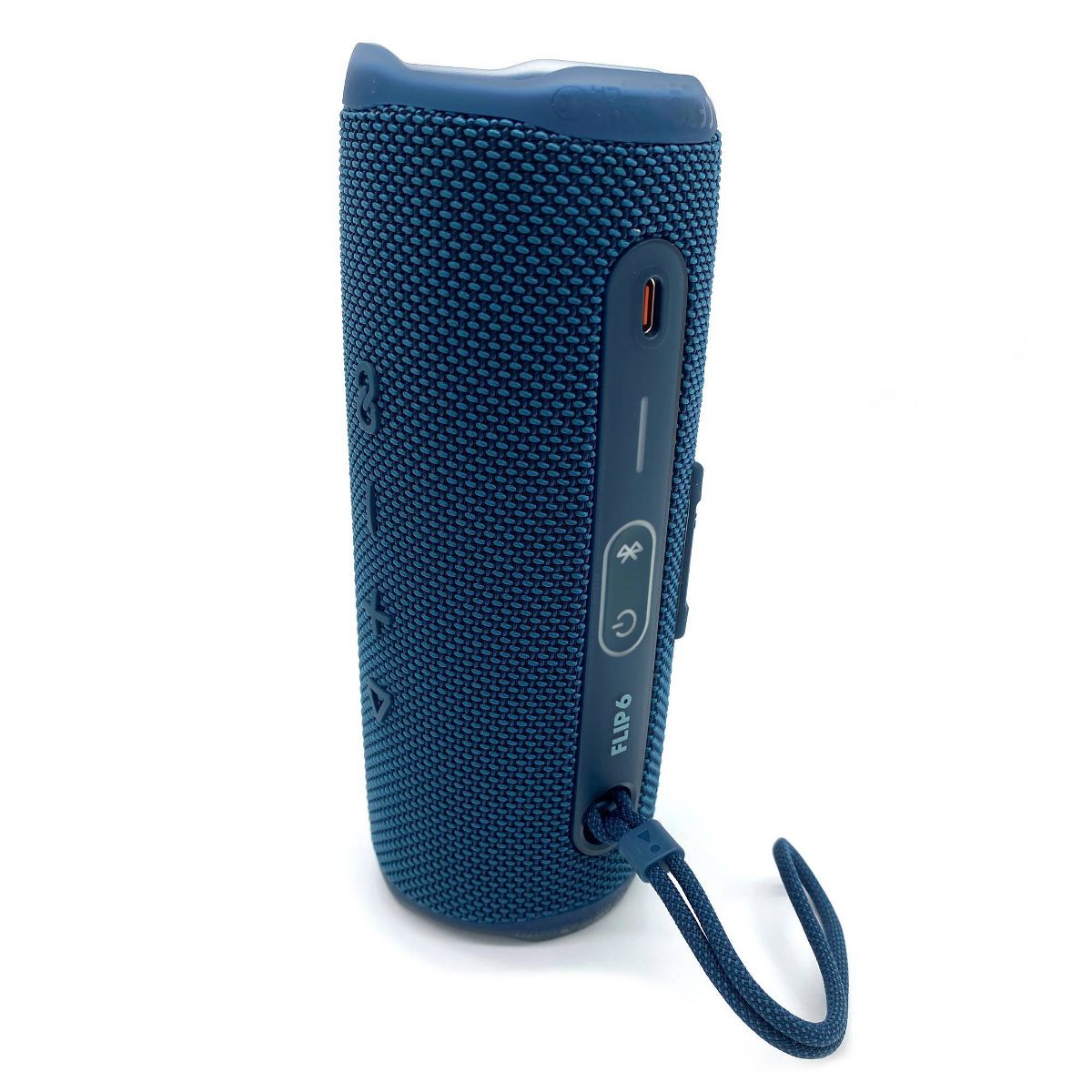Cool sounds on the go no matter what the weather. This Target Certified Refurbished JBL Flip 6 Blue speaker delivers rich and bold sound, with its optimized racetrack-shaped driver, separate tweeter, and dual pumping bass radiators. This big-sounding yet easy to carry speaker works in rain, beach sand or any place you take it. The waterproof and dustproof Flip 6 can survive wherever you like to party.