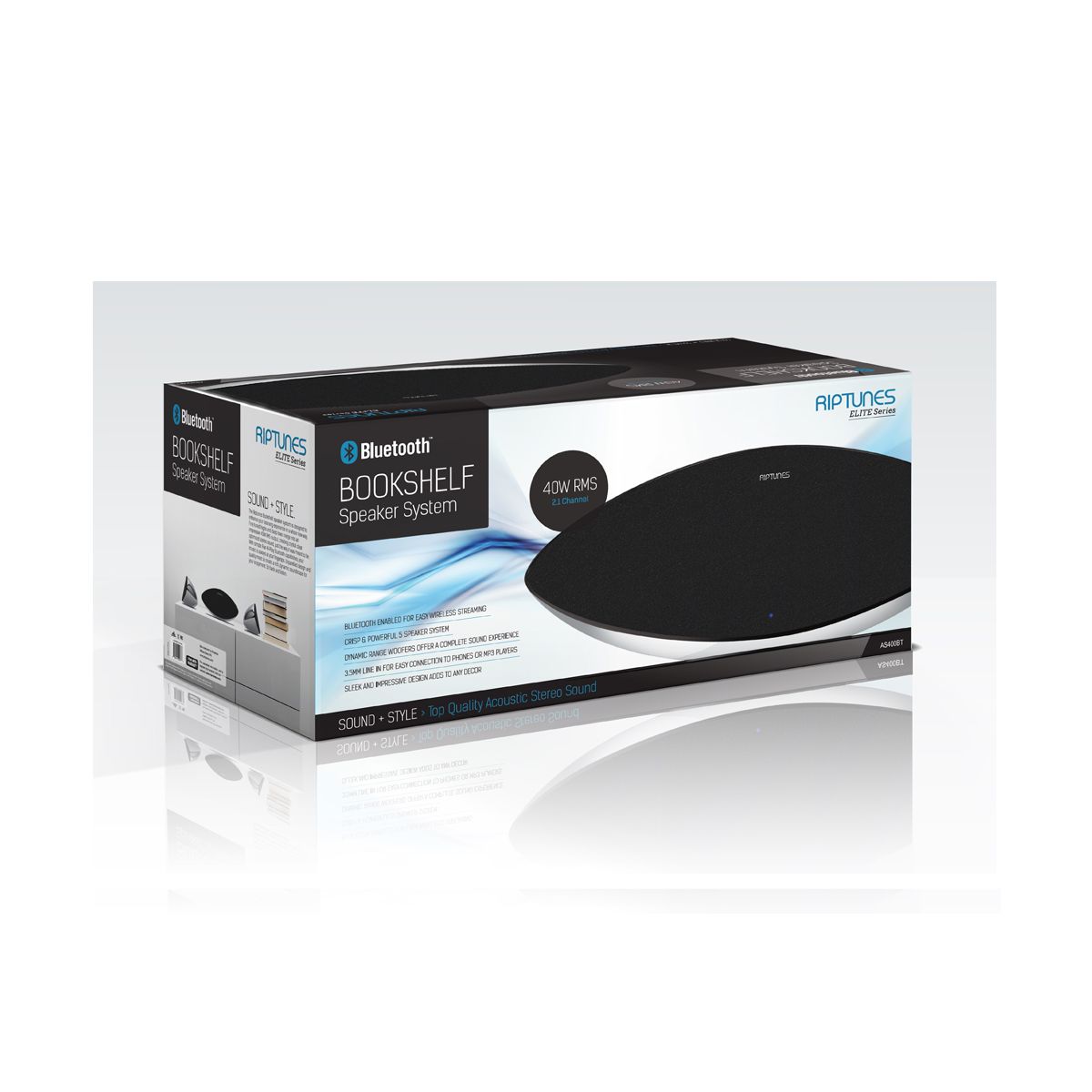 The Riptunes Bookshelf speaker system is designed to enhance your listening experience in a whole new way. Fine-tuned highs and sleek lows merge into an impressive 40W RMS output, creating crystal clear optimized stereo sound, just the way it was meant to be. With simple Pair-N-Play Bluetooth capabilities, your music is always at your fingertips. Unparalleled design and quality meet to create a rich, dynamic soundscape for your enjoyment. Sit back and listen.