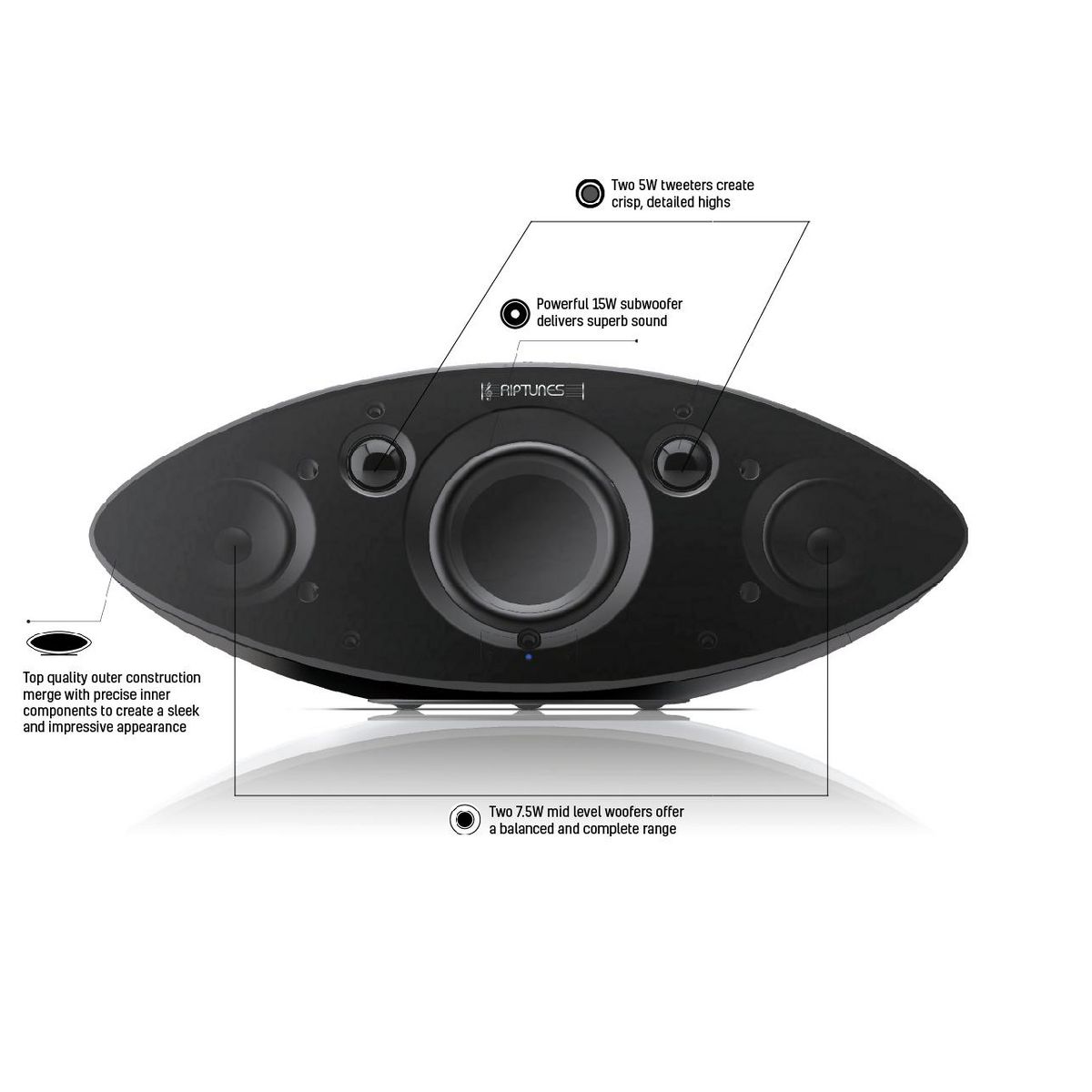 The Riptunes AS-4000BT features a top-quality outer construction merged with precise inner components creating a sleek and impressive appearance.