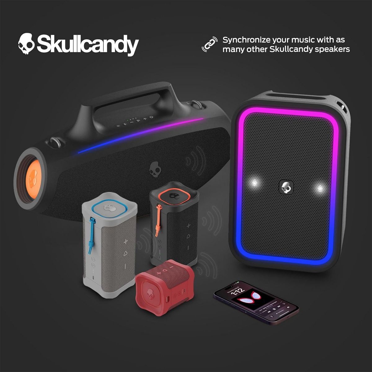 Skullcandy Barrel Bluetooth Boombox Speaker – Water-Resistant Portable Speaker, with LED Lightshow Mode, 12 Hour Battery, Multi-Link