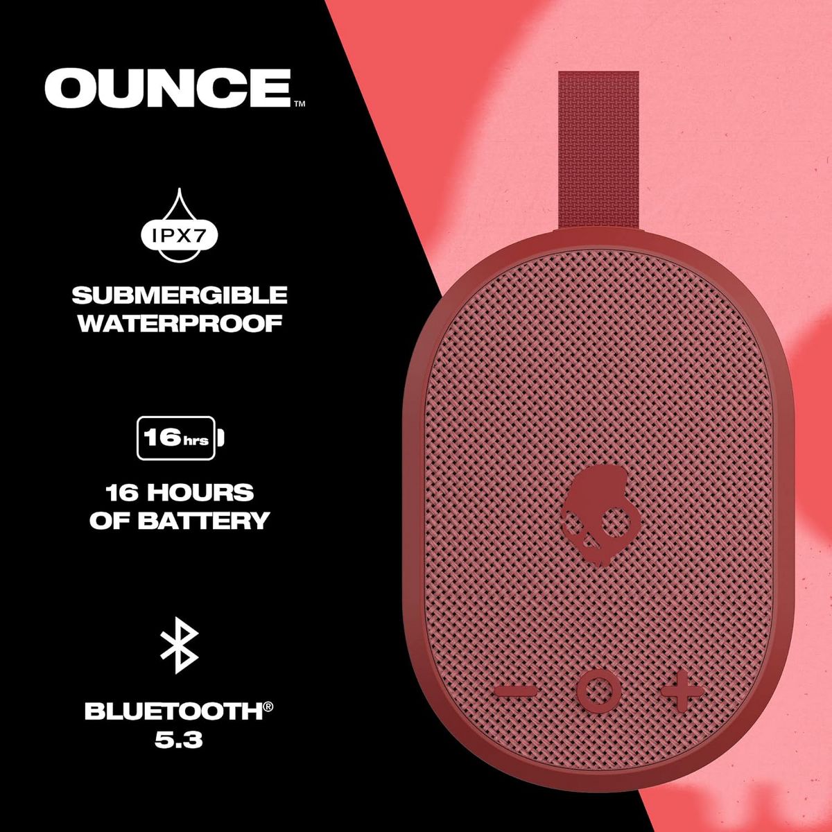 Skullcandy Ounce Wireless Bluetooth Speaker - IPX7 Waterproof Mini Portable Speaker with 16 Hour Battery and Ballistic Nylon Carry Strap