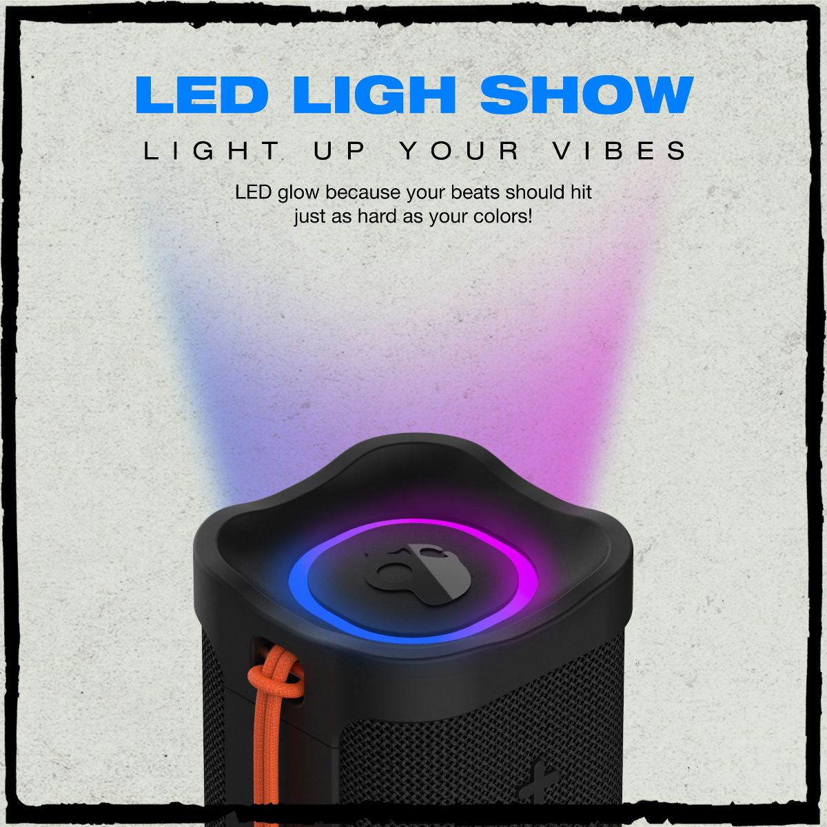 Skullcandy Terrain 2 Wireless Bluetooth Speaker, IPX7 Water Resistant, 14H Battery, Multi-Link, LED Light Show, Portable, Black