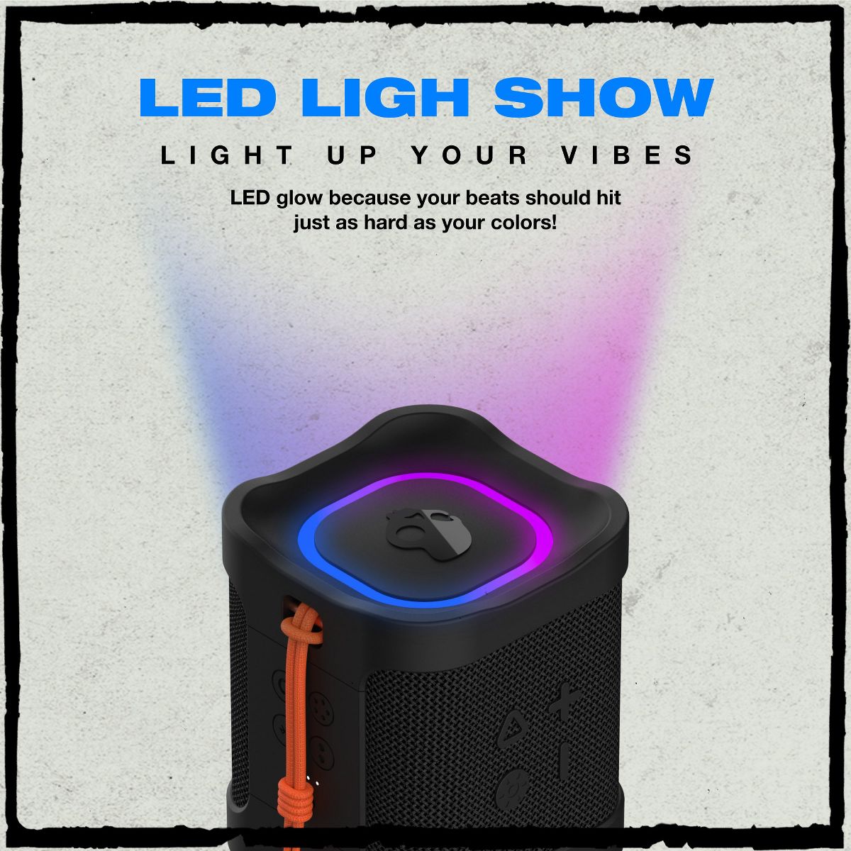 Experience incredible sound and bold features with the Skullcandy Terrain Mini 2 Wireless Bluetooth Speaker. This compact and portable speaker is designed to keep up with your active lifestyle, delivering powerful audio and seamless connectivity wherever you go. The IPX7 water-resistant design makes it perfect for beach days, poolside hangouts, or outdoor adventures, ensuring your music keeps playing no matter the conditions. The Terrain Mini 2 features Bluetooth 5.3 for a reliable connection, while its multi-link technology allows you to link up to 99 speakers for an immersive sound experience that fills any space. Enjoy a stunning visual element with LED lights that sync to your music, creating a captivating light show to enhance every song. Boasting a 14-hour battery life, the Terrain Mini 2 keeps your playlist going all day long, whether you're hiking, relaxing, or celebrating with friends. Its lightweight design makes it easy to carry, while the rich, powerful bass ensures your favorite tracks sound better than ever. Ready to elevate your music experience? Order the Skullcandy Terrain Mini 2 Wireless Bluetooth Speaker today and take your sound wherever you go!