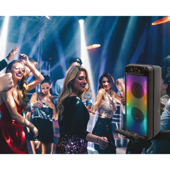 The KL-40 Rumble Tower features mesmerizing flame effects that add a touch of excitement to your music experience. These dynamic visual elements create the perfect ambiance for any party or event, enhancing the mood with vibrant, dancing lights that complement the powerful sound.
