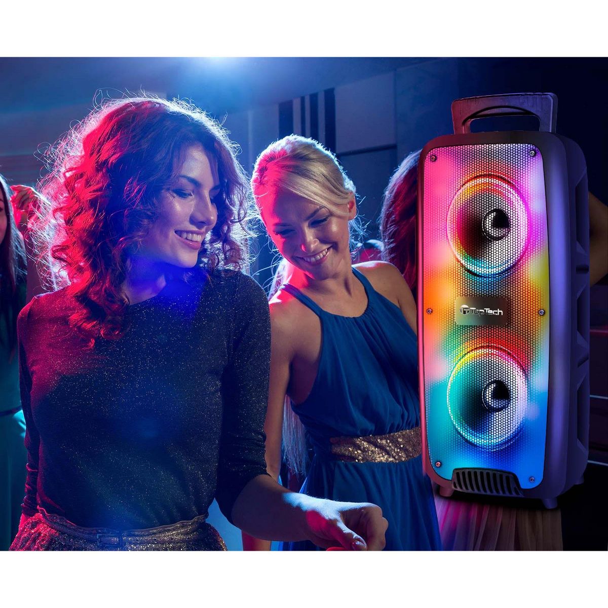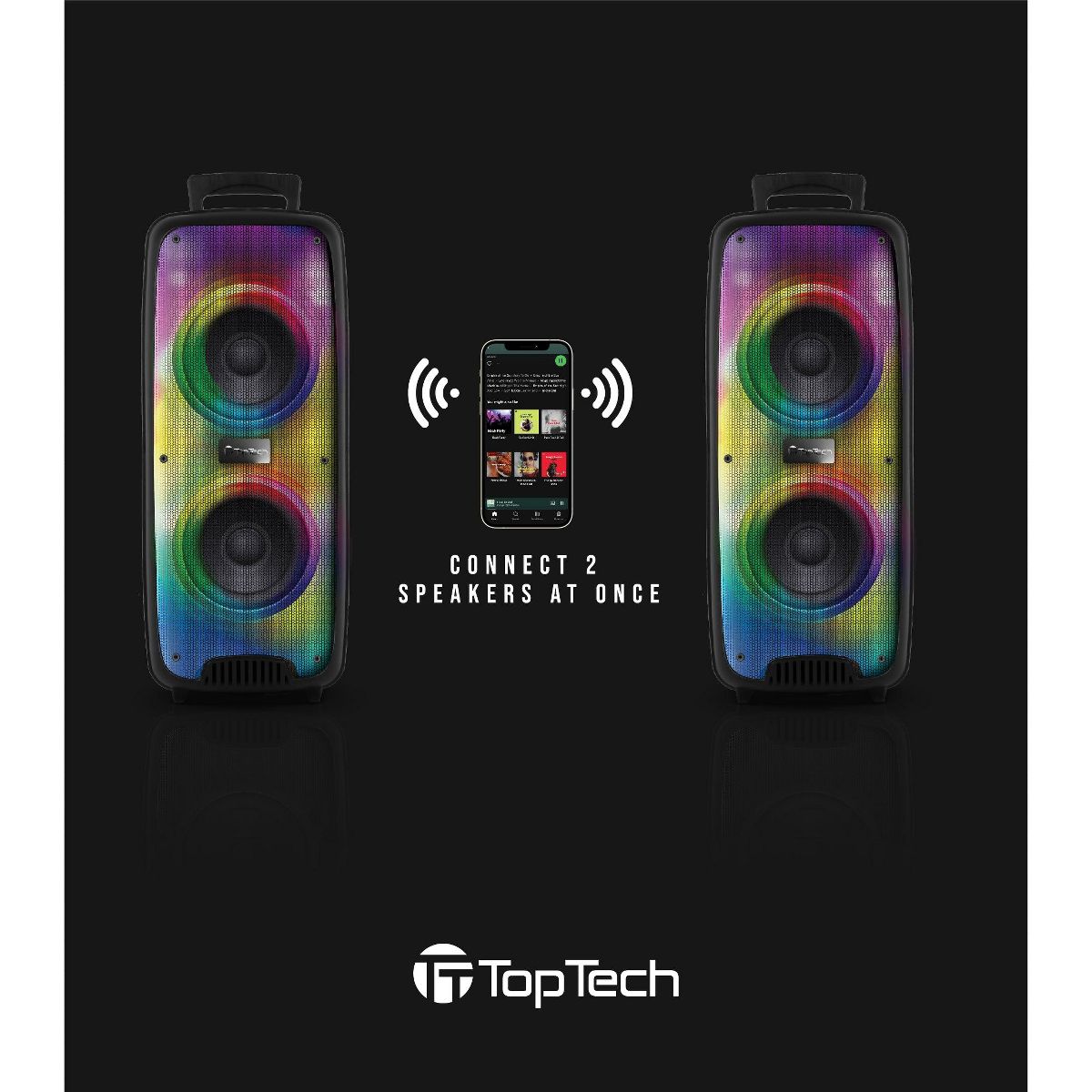 TOPTECH KL-60 2x6.5" Bluetooth Party Speaker with Multi-color Disco Lights, Wheels & Microphone