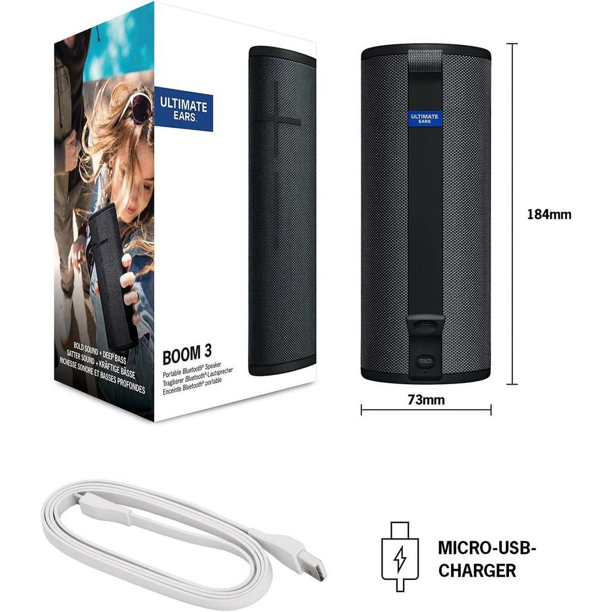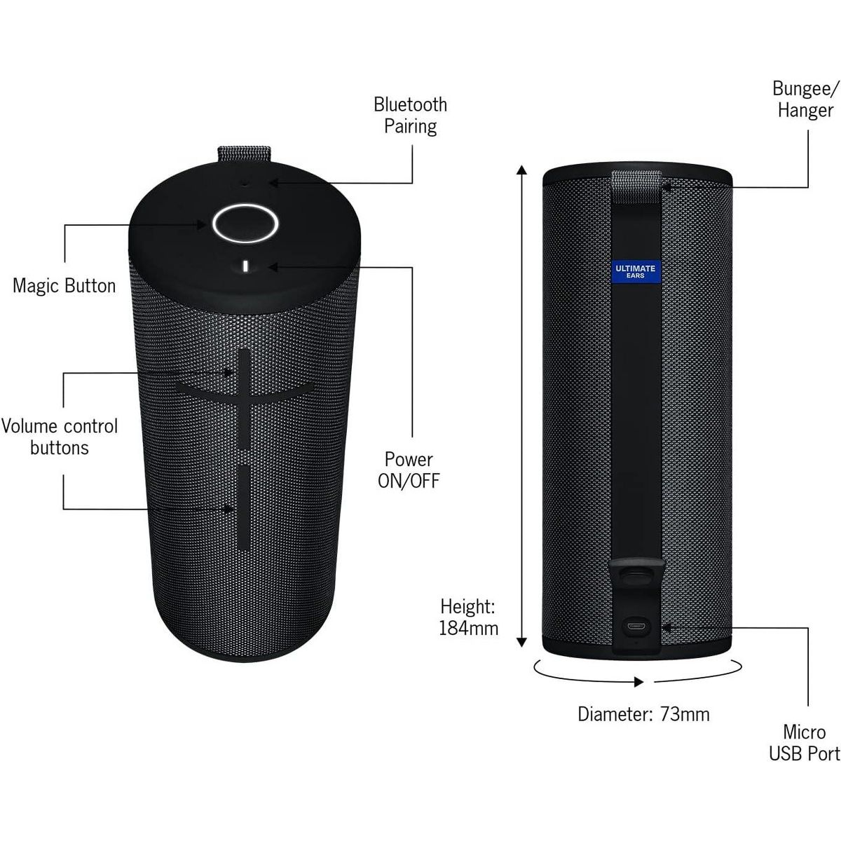 Ultimate Ears Boom 3 Wireless Bluetooth Speaker, Bold Sound + Deep Bass, Bluetooth, Magic Button, Waterproof - Night Black