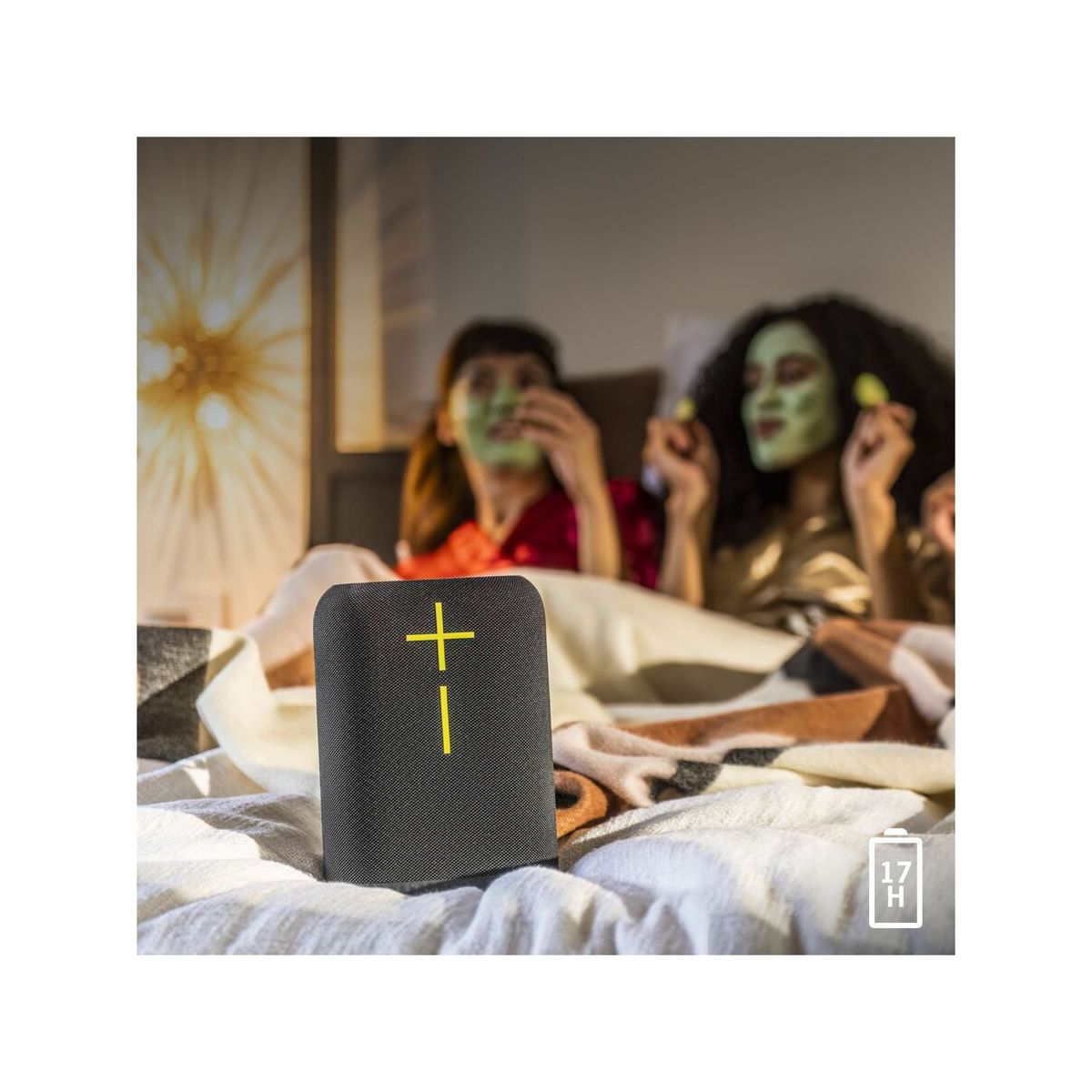Introducing Ultimate Ears EPICBOOM, a portable Bluetooth speaker with bassy 360 immersive sound and adaptive or preset EQ for epic sound you can take anywhere. Enjoy two easy ways to boost any party-use PartyUp mode to sync your speaker with your friends' for louder sound, or hit the Outdoor Boost for better sound in the great outdoors.Keep the party going longer with 17 hours of playtime. One-touch NFC connection makes it simple to pair and switch devices, with a massive 55 m range. Plus, it's IP67 rated to withstand dust and get submerged in 1 m of water for 30 mins so you can party at the pool, the beach, or even in the shower.