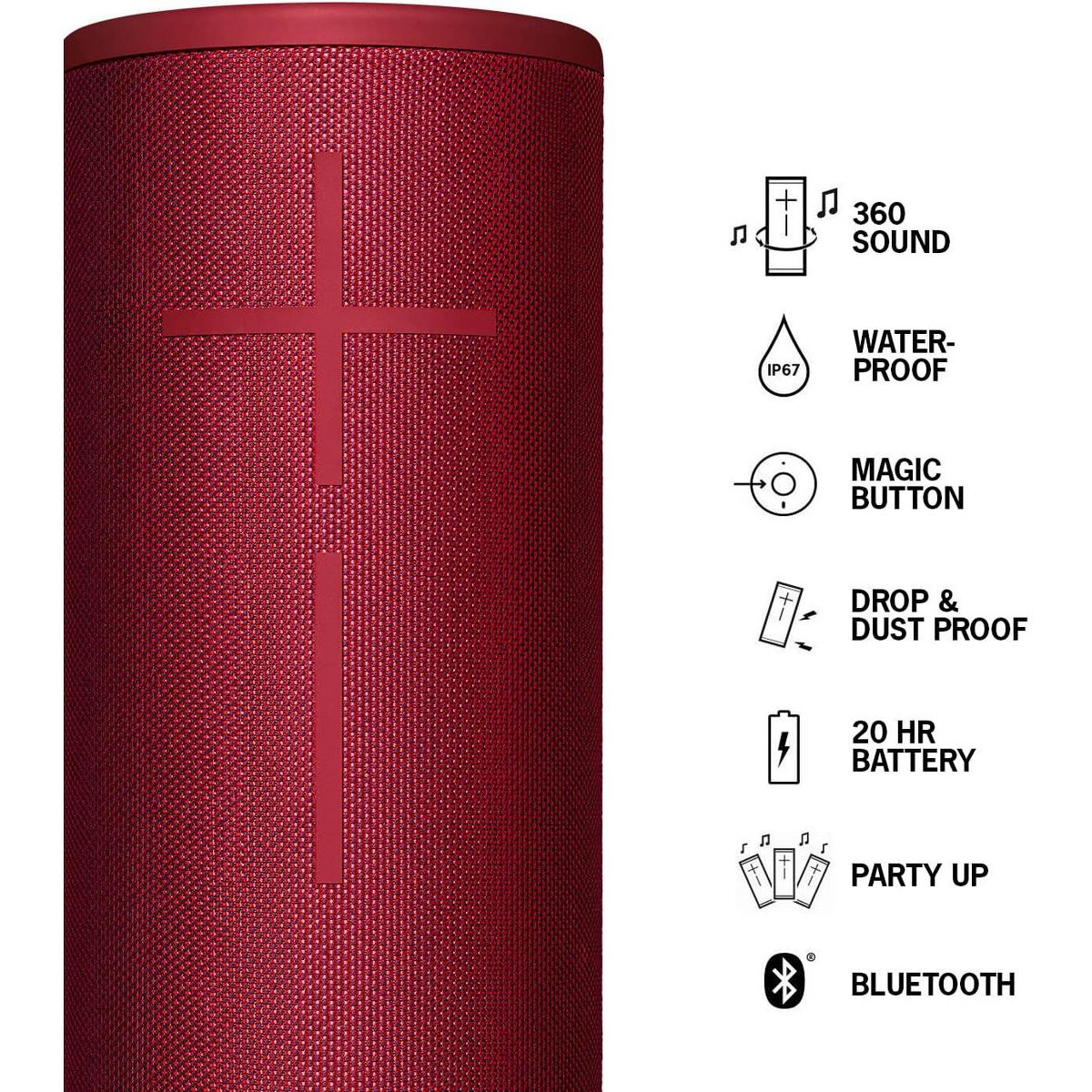 Ultimate Ears MEGABOOM 3 is a supremely powerful, portable wireless speaker. It blasts loud, clear, and immersive 360° sound with deep thundering bass. And it’s all meticulously balanced so you hear every note. Megaboom 3 is also insanely waterproof, dustproof and drop proof and ready to rock any adventure. From snowboarding in the mountains to breakdancing into the pool, MEGABOOM 3 has your back. And with the all-new magic button, you can play, pause and skips songs with just one touch. Plus all this awesomeness comes wrapped in a stunning, Two-Tone, high-performance fabric. The ultimate Party starter has been redefined.