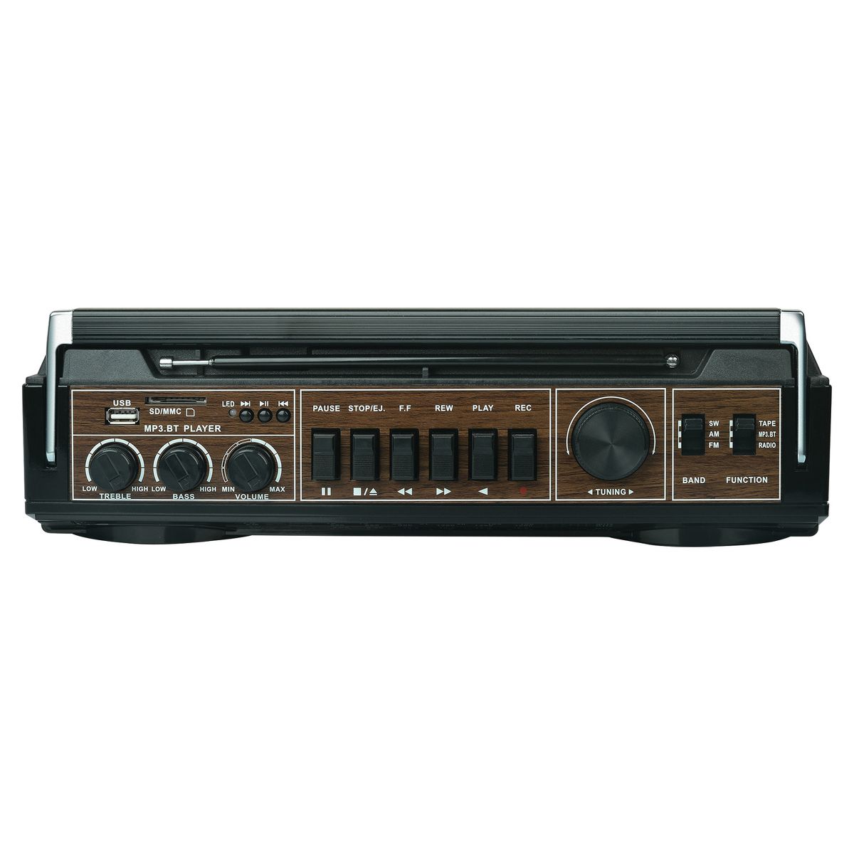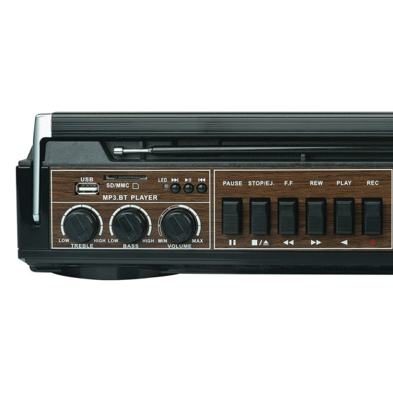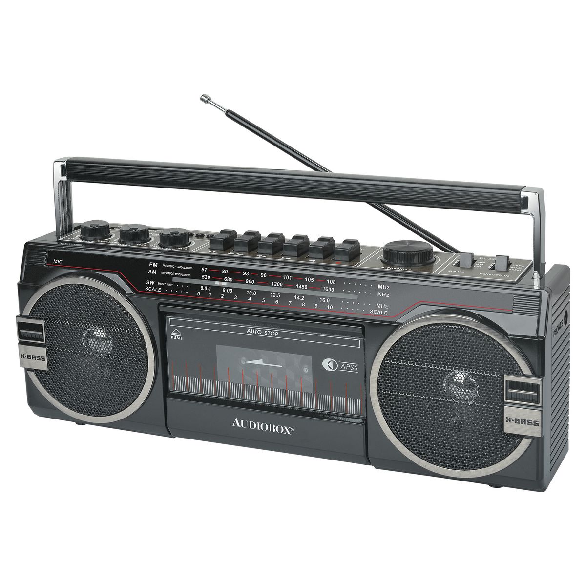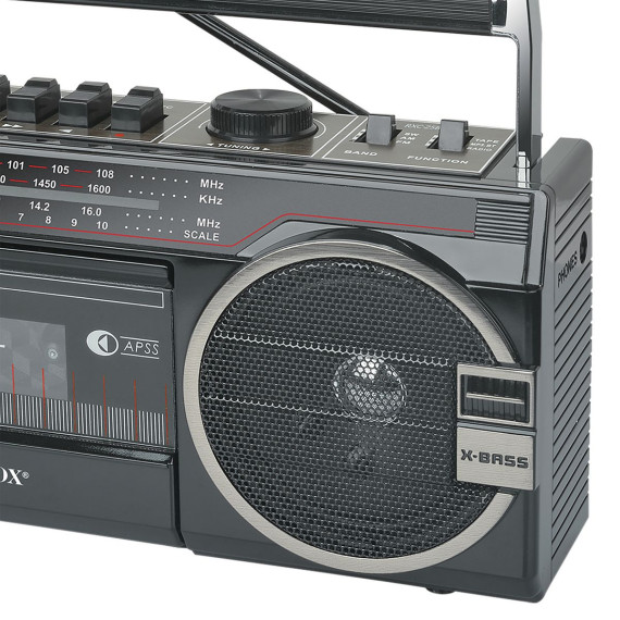 Looking for a retro-styled boom box that has up-to-date features? Then check out this Red Audiobox RXC-25BT Portable Cassette Player and Recorder Boom Box! In addition to being able to playback and record on cassettes, you can convert your cassette audio to digital MP3 files, thanks to the unit's USB/SD Card slots. There's also Bluetooth connectivity for audio streaming and a multiband AM FM SW radio so you can stay in touch with what's happening in the world. 2 speakers provide 10 watts of power. Going retro never sounded so good!