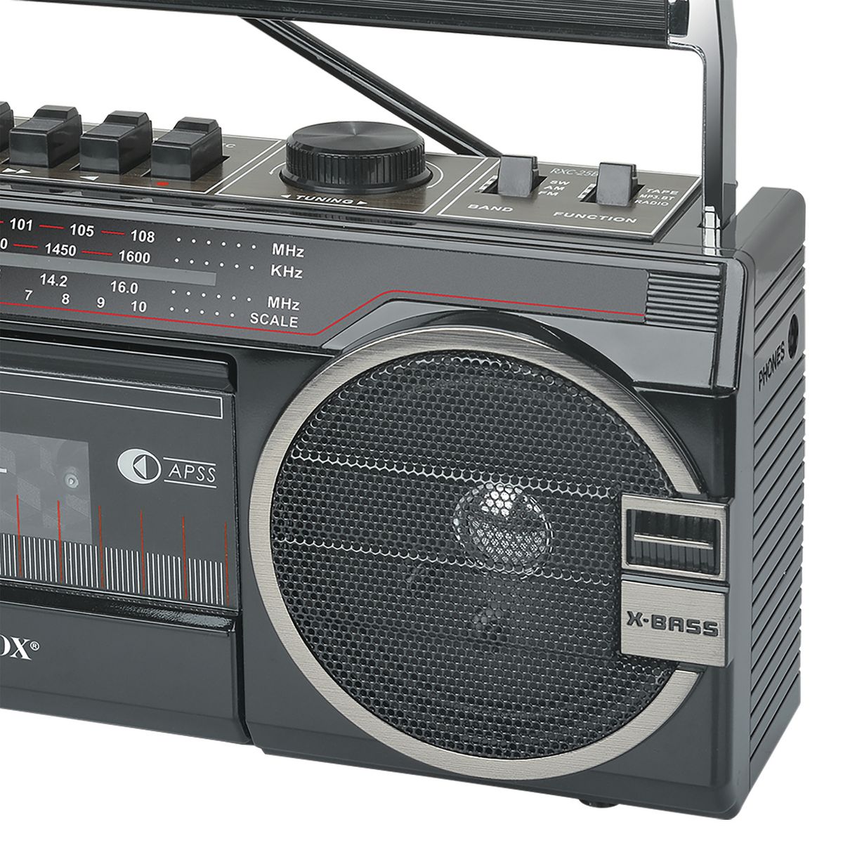 Audiobox® RXC-25BT 10-Watt Portable Cassette Player and Recorder Boom Box with 3-Band Radio, Bluetooth®, and Speakers (Red)