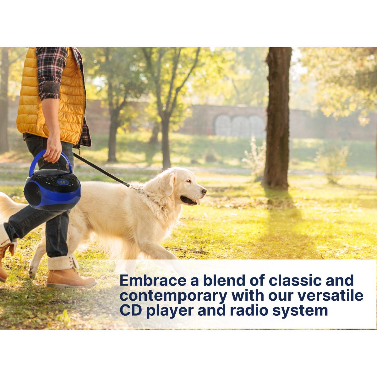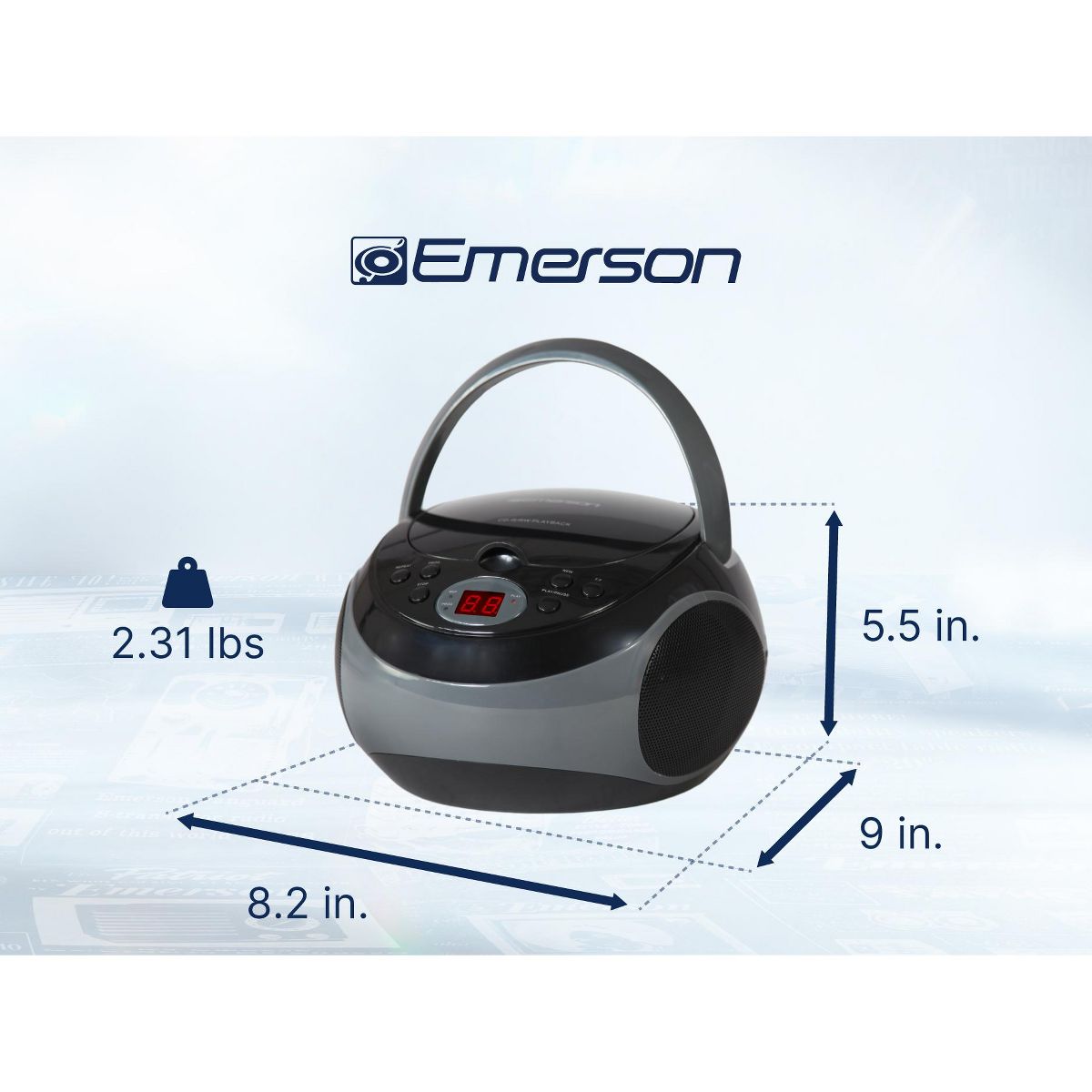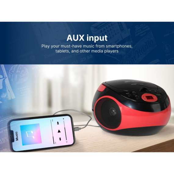 Take your favorite music wherever you go with Emerson™ Portable CD Player (EPB-3000). Stream music through the AM/FM radio feature and an AUX input. Listen to songs in a particular order with the player’s programmable memory to set up your own custom playlist. This CD/radio player also features a two-way power featuring both DC battery and AC power to enjoy your music on the go or at home.