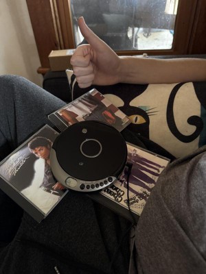 Take your classic portable CD player one step farther and bring your music into the present with this handy updated GPX Bluetooth® version. The compact round player doesn't waste any space as it allows you to stream CDs and MP3-CDs to your Bluetooth headphones or speaker. Easy pushbutton controls with dial volume control and built-in headphone jack. Includes a set of stereo earbuds. 5.3in. x 5.7in. x 1in.