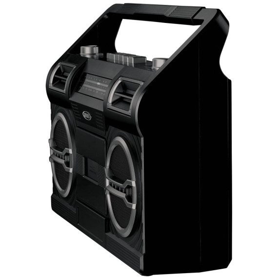 Make a statement wherever you go with the unique styling of the JENSEN® MCR-500 portable boom box. The unit includes an AM/FM radio, cassette player with 1 touch recording, a headphone jack, and built-in speakers. You can also play music from an MP3 or other digital media player using the auxiliary input jack. The unit also includes a built-in handle, easy access top mounted controls and it operates using AC power or six (6) ‘C’ batteries (not included).