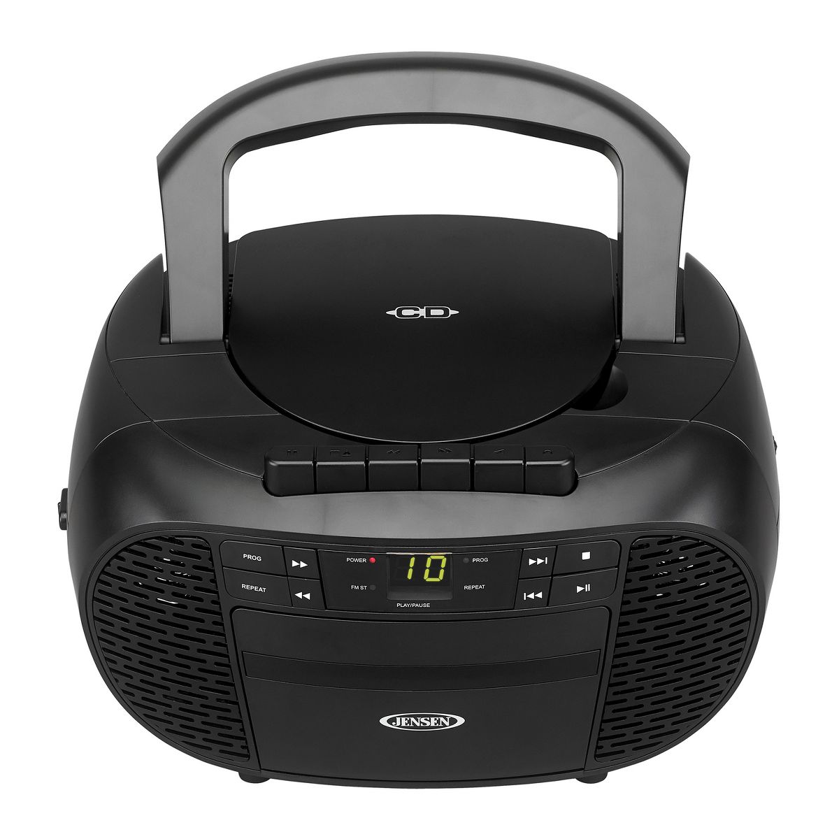JENSEN® Portable Bluetooth® CD Music System with Built-in Speakers, Cassette Player/Recorder, AM/FM Radio, and Aux, CD-550ABT (Black)