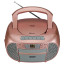 The CD-550ABT Portable Bluetooth® Stereo Compact Disc Cassette Recorder with AM/FM Radio from JENSEN® lets you take along your favorite tunes with a feature-rich music system that includes a CD player, cassette recorder, AM/FM stereo radio, and Bluetooth® connectivity. This unit features a top-loading CD player with green LED track display, which is compatible with both CD-R and CD-RW compact discs, so it provides versatile playback options for store-bought or custom-made CDs. This portable stereo music system has a built-in handle, which is smooth and comfortable for easy transport. Enjoy making recordings with a simple 1-touch function or use the built-in antenna to get clear AM/FM radio for listening or recording. A stereo headphone jack and aux input jack for connecting your iPod®, MP3, or other digital audio players provide even more functionality. This device uses standard 120-volt/60-Hz power or can operate on 6 C batteries (sold separately).