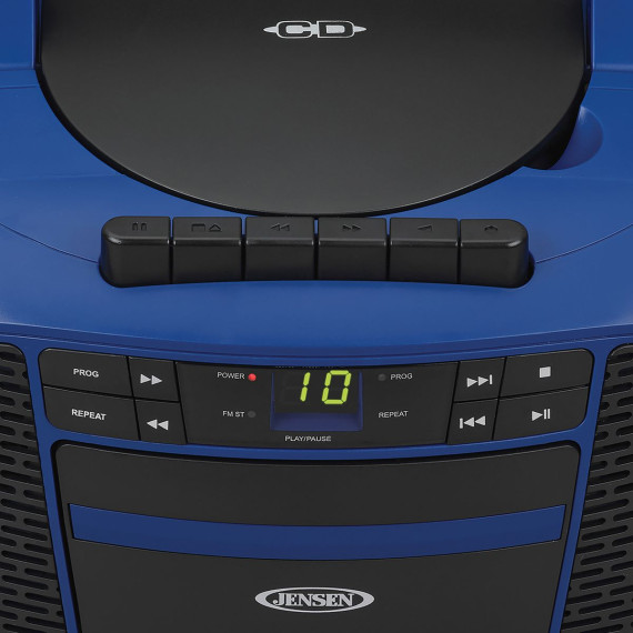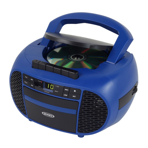 JENSEN® Portable CD Music System with Cassette Player/Recorder and AM/FM Stereo Radio, CD-550 (Blue/Black)