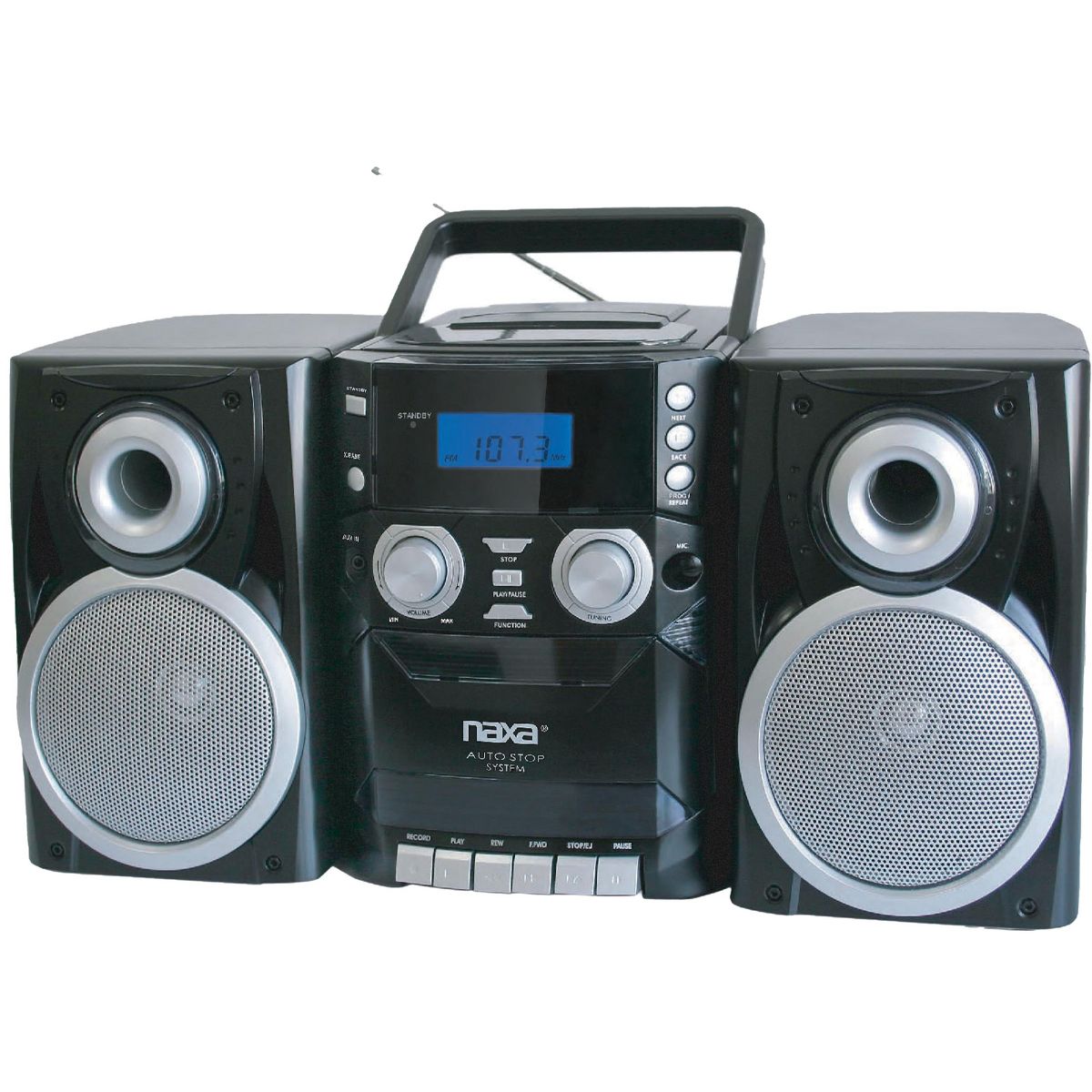 Naxa Electronics NPB-426 Portable CD Player with AM/FM Stereo Radio, Cassette Player/Recorder and Twin Detachable Speakers