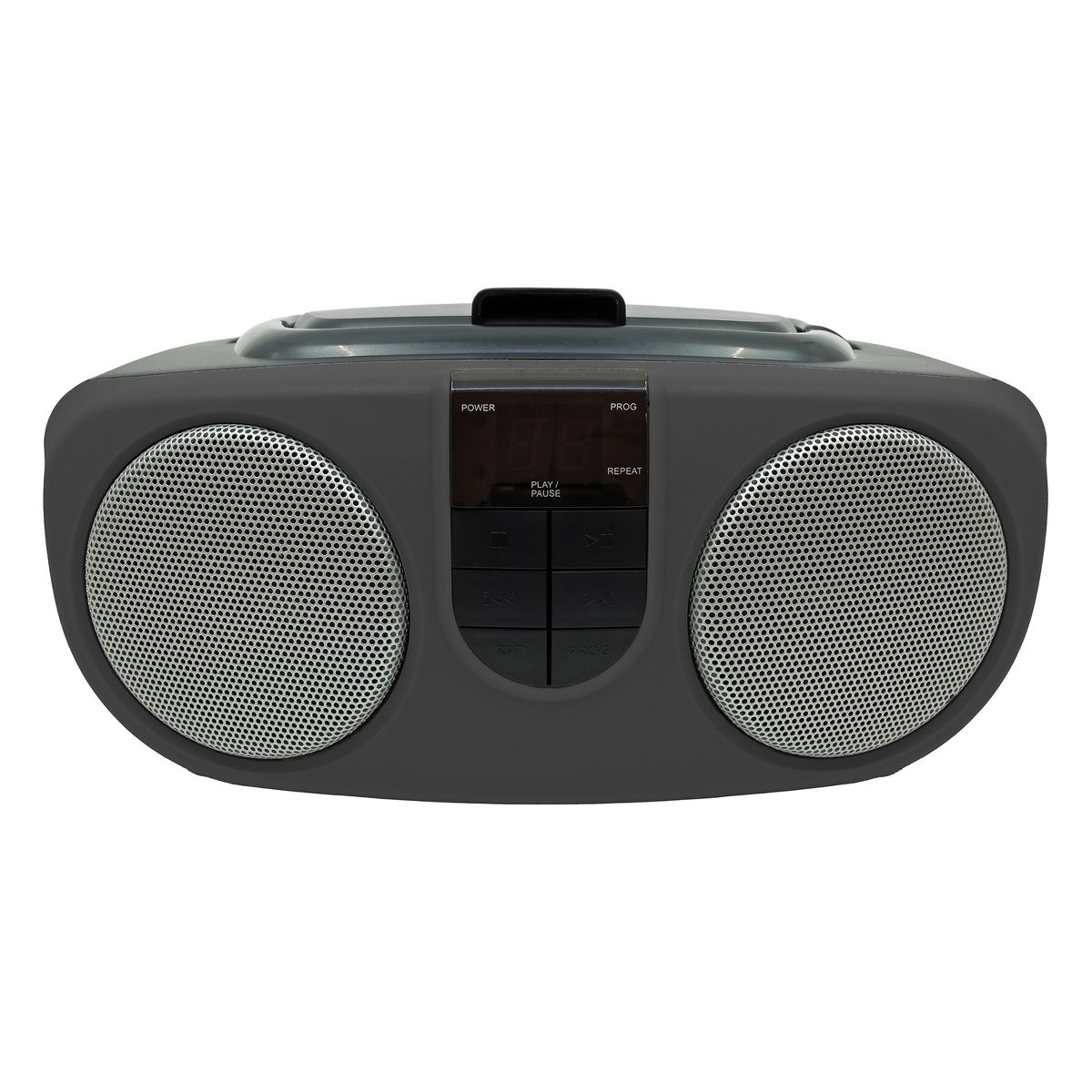 Get ready to turn up the block! This Proscan® Portable CD/Radio Boom Box lets you bring your music with you wherever you go. The CD-R-compatible CD player lets you play your favorite albums and personal mix CDs. Even if you forgot your CDs at home, the AM/FM radio lets you crank the tunes up anyway. Switch up your playlist using the program and repeat functions, and stay aware of what track you’re on with the digital display. Using the aux input, you can play audio from additional devices through the boom box. The stylish design fits into any décor so this versatile CD boom box is ideal for home or on-the-go use.