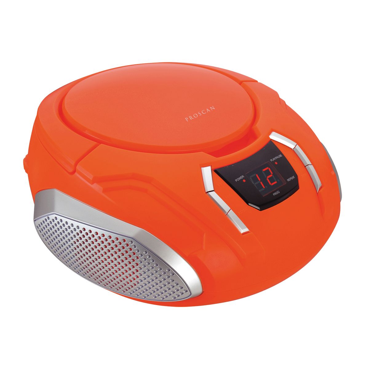 Tune into your favorite tunes with this Proscan® Portable CD Boom Box with AM/FM radio. The top-loading CD player has 20-track memory while the unit itself has a telescopic antenna for clear reception of your local stations and a 3.5-mm stereo headphone jack for private listening. Two 3-in. high-output stereo speakers fill your space with immersive sound. It even comes with an aux input for audio playback from devices with 3.5-mm connectivity.