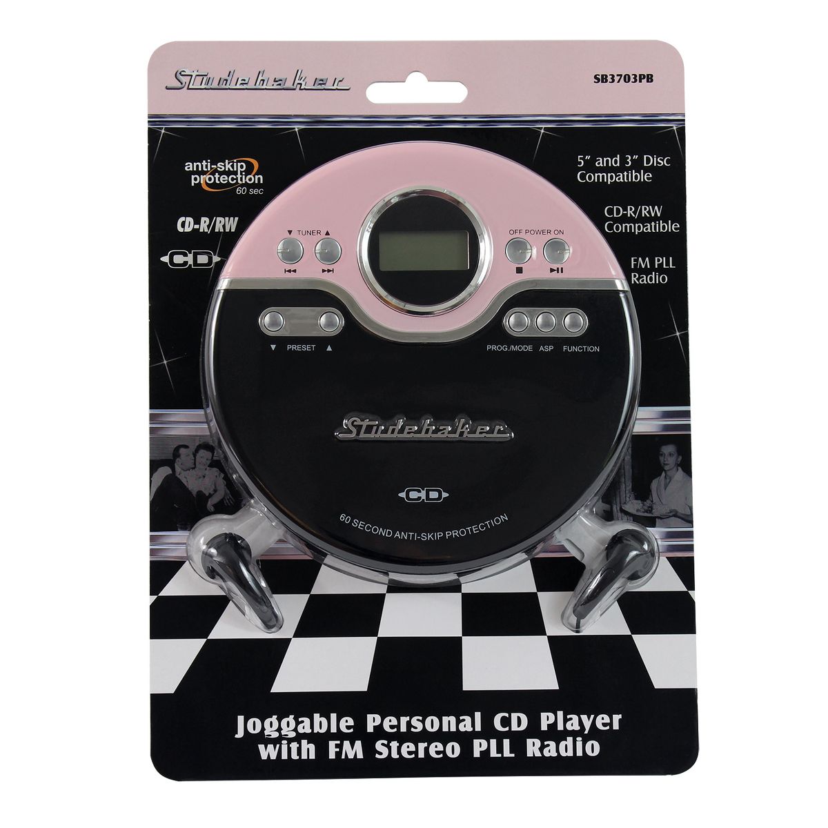 Studebaker Personal CD Player with FM Radio, 60 Second ASP and Earbuds (SB3703) - Black