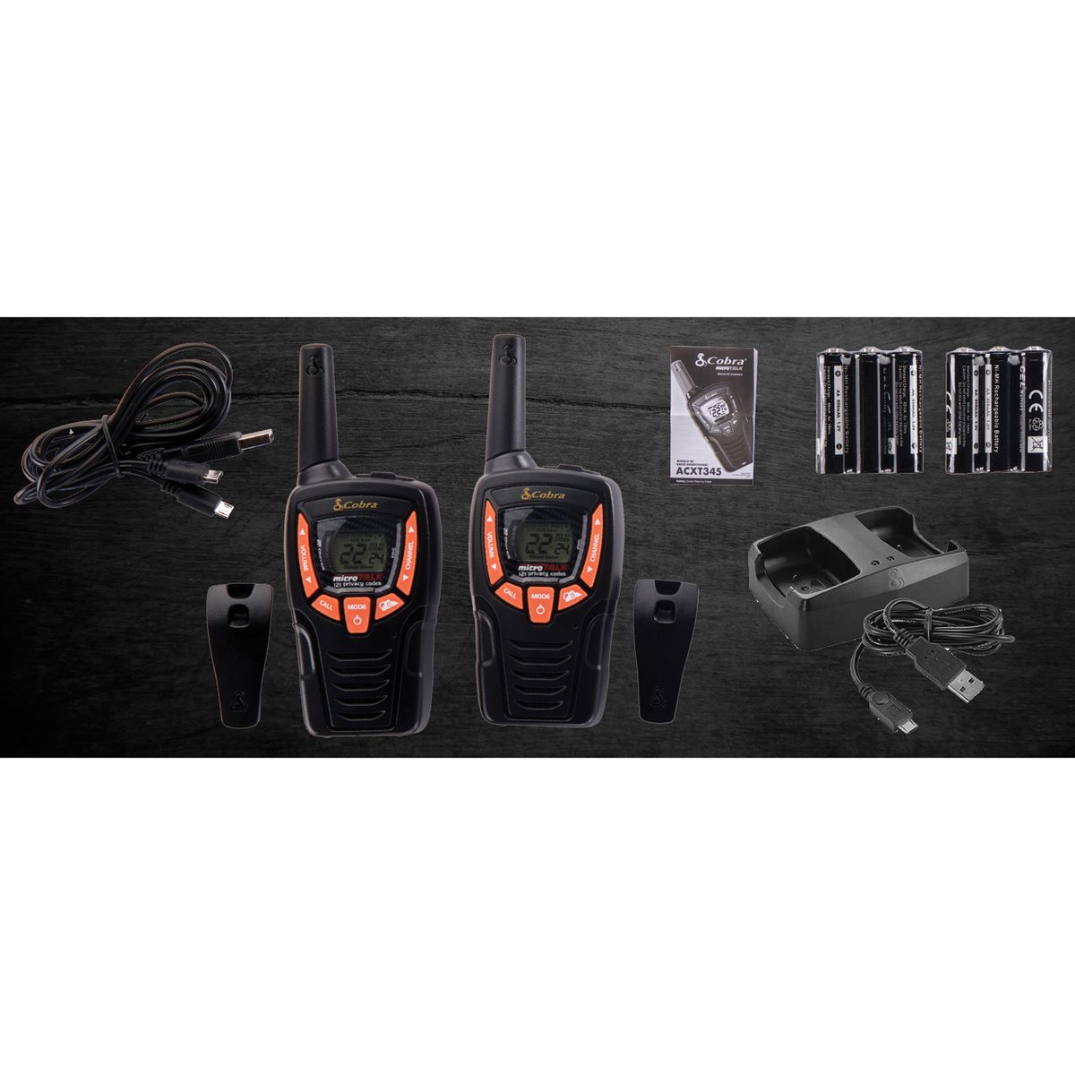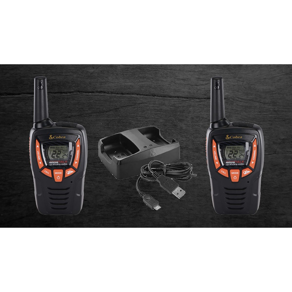 Staying in touch with your family and friends is convenient and easy when you use this pair of Cobra microTALK 2-way radios. These walkie talkies are compact yet have a range of up to 23 miles! Equipped with 22 channels (7 shared with FRS/GMRS, 7 FRS only, and 8 GMRS only), you’ll be able to communicate with others while hiking, biking, and working. 10 NOAA All Hazard weather alert radio channels will help you stay prepared. Keep track of family and friends at a crowded public event, check with travel companions in another car, talk with neighbors, and even arrange meeting spots with others while shopping at the mall. Voice-activated (VOX) transmission frees your hands for other tasks. 5 selectable tones will distinguish between different parties for incoming calls. A total of 2,662 channel combinations are available when the 22 channels are combined with the 121 privacy codes (38 CTCSS/83 DCS). These combinations prevent interference from other radios.