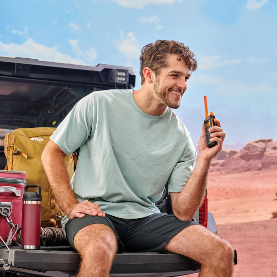 Designed to further enhance your off-roading experience with better connectivity and improved ease-of-use, the TrailBlazer 450 is a balance of features and affordability in the Cobra® family of GMRS handheld radios. Designed and engineered in the U.S., the TrailBlazer 450’s longer battery life, higher power, and better antenna flexibility gives you clearer audio and longer range in your explorations. When you venture deep into the wilderness, its repeater compatibility gives you the boost of range you need to stay connected to your crew while maintaining a quality connection. You can depend on the up to 16 hours of battery life and ability to charge on the road with any universal USB-C® charging cable. With the most lightweight body in its class, TrailBlazer radios are ready for any adventure loadout. We know ergonomics are important, so all our GMRS radios feature a sturdy volume knob instead of a button to prevent accidental turn-ons when stowed. Its intuitive design makes operation and programming on its LCD screen simple, even in low-light conditions. Hands-free accessories (sold separately) allow you to give the trail ahead your full attention. The TrailBlazer 450 adds dust and water resistance so it can handle whatever you or the elements throw at it. The TrailBlazer is backed by 60 years of Cobra® experience leading the 2-way radio industry, so you can be confident you can stay connected on your next off-road adventure.