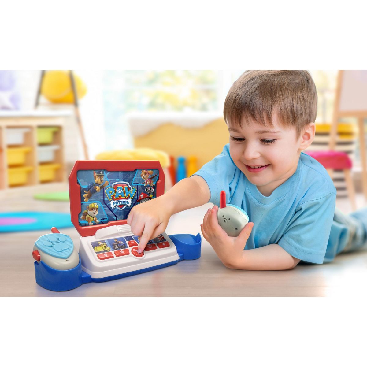 Paw Patrol to the rescue! Press the buttons on the command center to help the Paw Patrol squad complete a variety of missions - Chase, Marshall, and all your favorite pups will guide you along the way. Use the included walkie talkies to exchange static free messages with a friend while you take on each mission together. Makes a great gift for any little pup!
