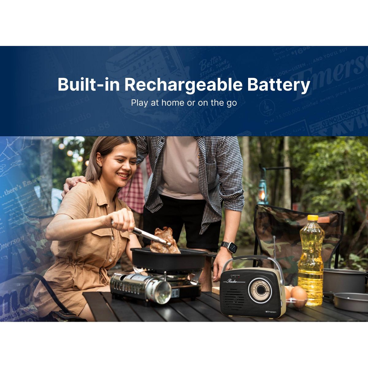 Emerson EAS-3002 Portable Retro Radio with Built-in Rechargable Battery, Gray