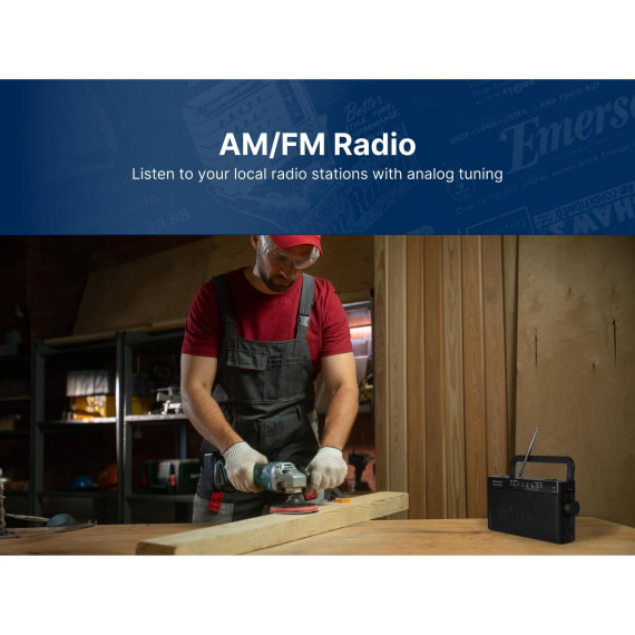 The Emerson ER-7004 Lightweight Portable AM/FM Radio with Weather Band offers reliable and versatile performance for home, travel, and outdoor use. Featuring digital tuning, this compact radio ensures precise and effortless access to your favorite AM/FM stations, as well as essential weather updates via the Weather Band. Its telescoping antenna delivers enhanced signal reception, so you never miss critical news or entertainment, whether you're indoors or on the go.Designed for convenience, this radio is lightweight and compact, making it easy to carry and store. The option to use either battery or AC power adds to its portability and flexibility, making it a dependable companion for camping trips, road journeys, or emergency preparedness. The sleek design and intuitive controls ensure a user-friendly experience, while its durable build guarantees long-lasting performance.Stay connected wherever you are with the Emerson ER-7004 Lightweight Portable AM/FM Radio, a practical and efficient solution for tuning in to music, news, and weather updates anytime, anywhere.
