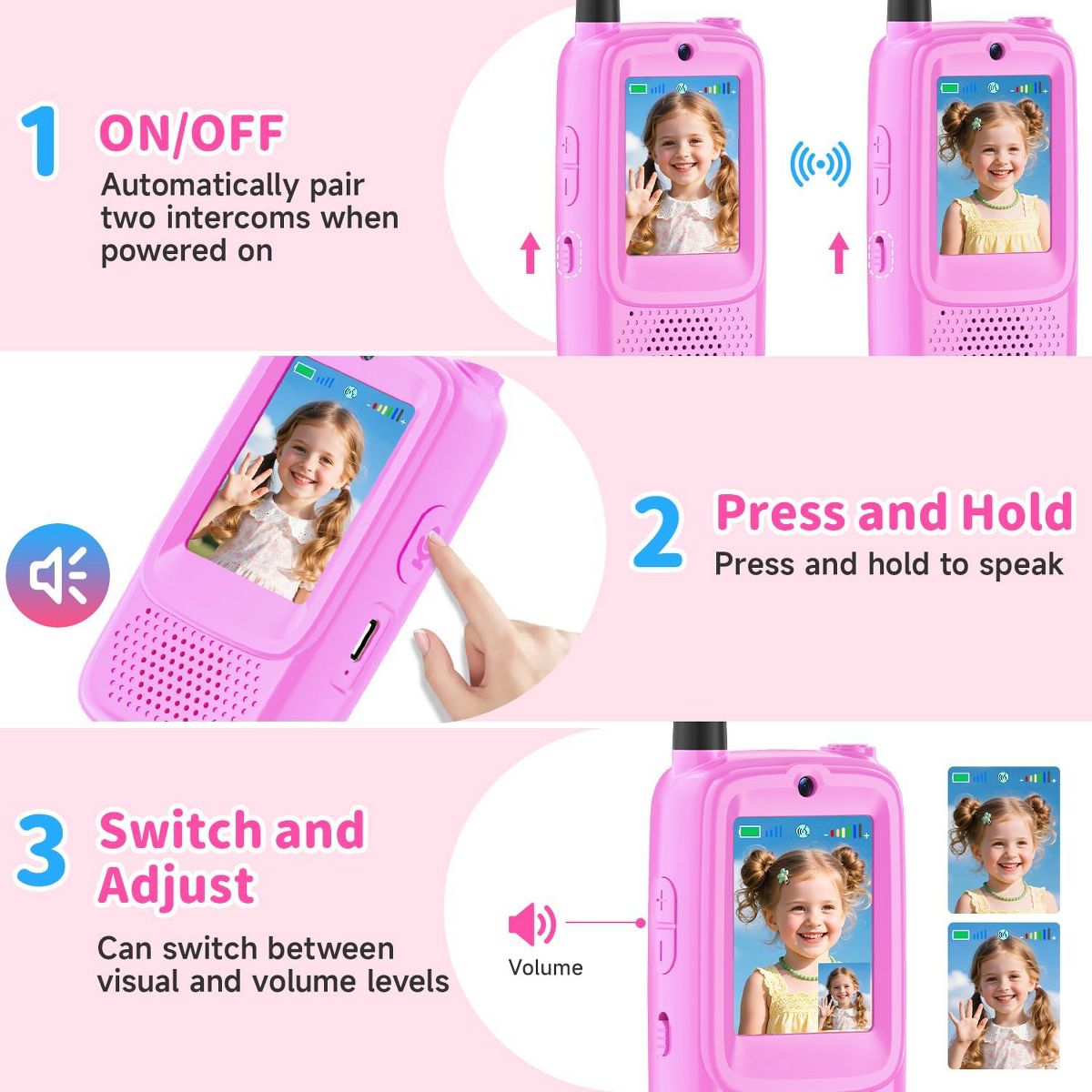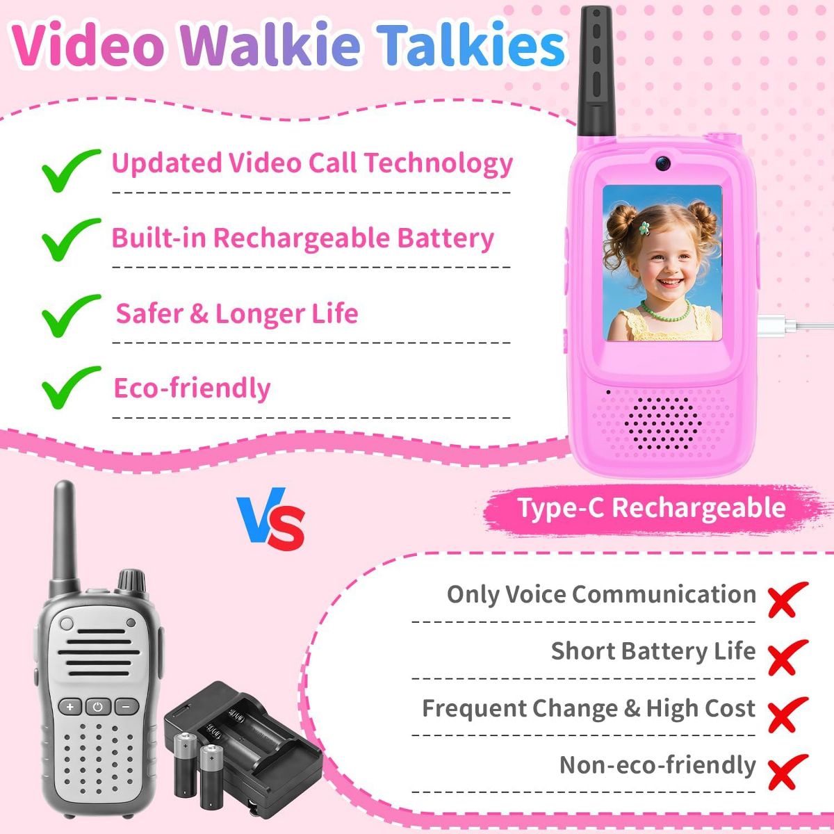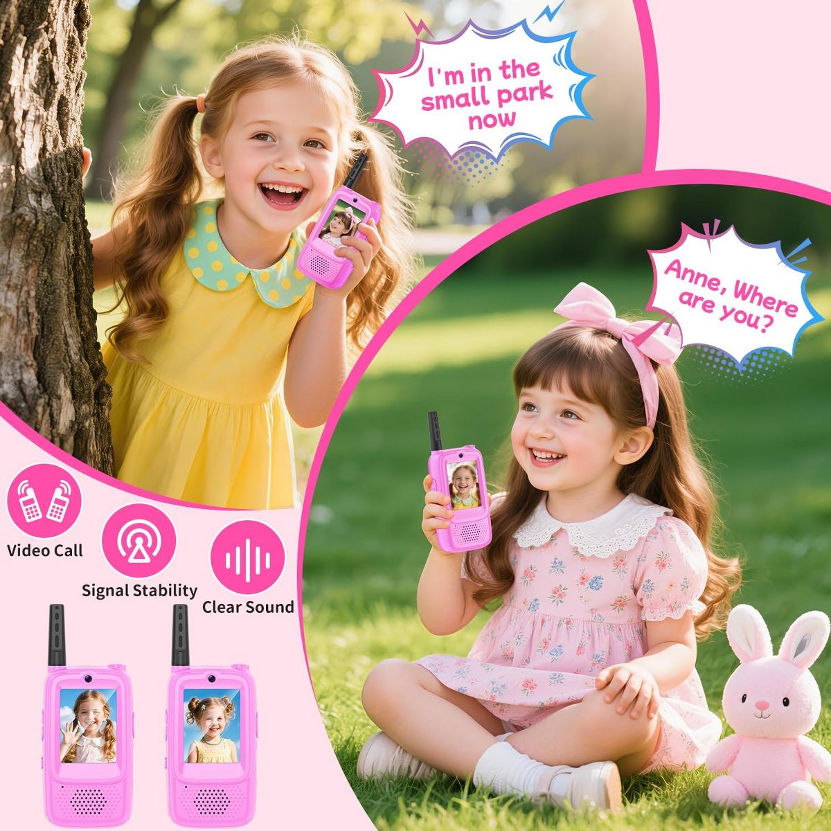 A video walkie talkies set gives kids a simple way to talk and share moments during everyday adventures. This set is a video walkie talkies option for everyday play, helping kids coordinate games and share quick moments with friends and family. The listing mentions gift or birthday ideas, so it can be a gift-ready pick for gifting. The listing highlights features that keep play moving while staying easy to understand. Video and audio communication can make pretend adventures feel more real. A voice changer mode adds variety to role play and silly check-ins. For distance, the listing notes long-range transmission , which can vary by environment. Use it for camping, outdoor play, indoor play, yard when kids want to stay connected and coordinate turns. For repeat use, rechargeable power can be convenient, and push-to-talk style controls help kids start chatting quickly. Follow the provided instructions, keep devices dry, and handle with care during active games. Refer to listing details for exact specs. Quick Notes: - Setup & Use: Charge and set channels or modes as the listing instructs, then practice short messages so kids learn timing. - Safety & Notes: Use with supervision for younger children and keep devices away from water. Follow the included guidance for best results. - Storage & Space: Store units and any listed accessories together so everything is ready for the next play session. - Performance/Use Case: Long range is described and can change wit