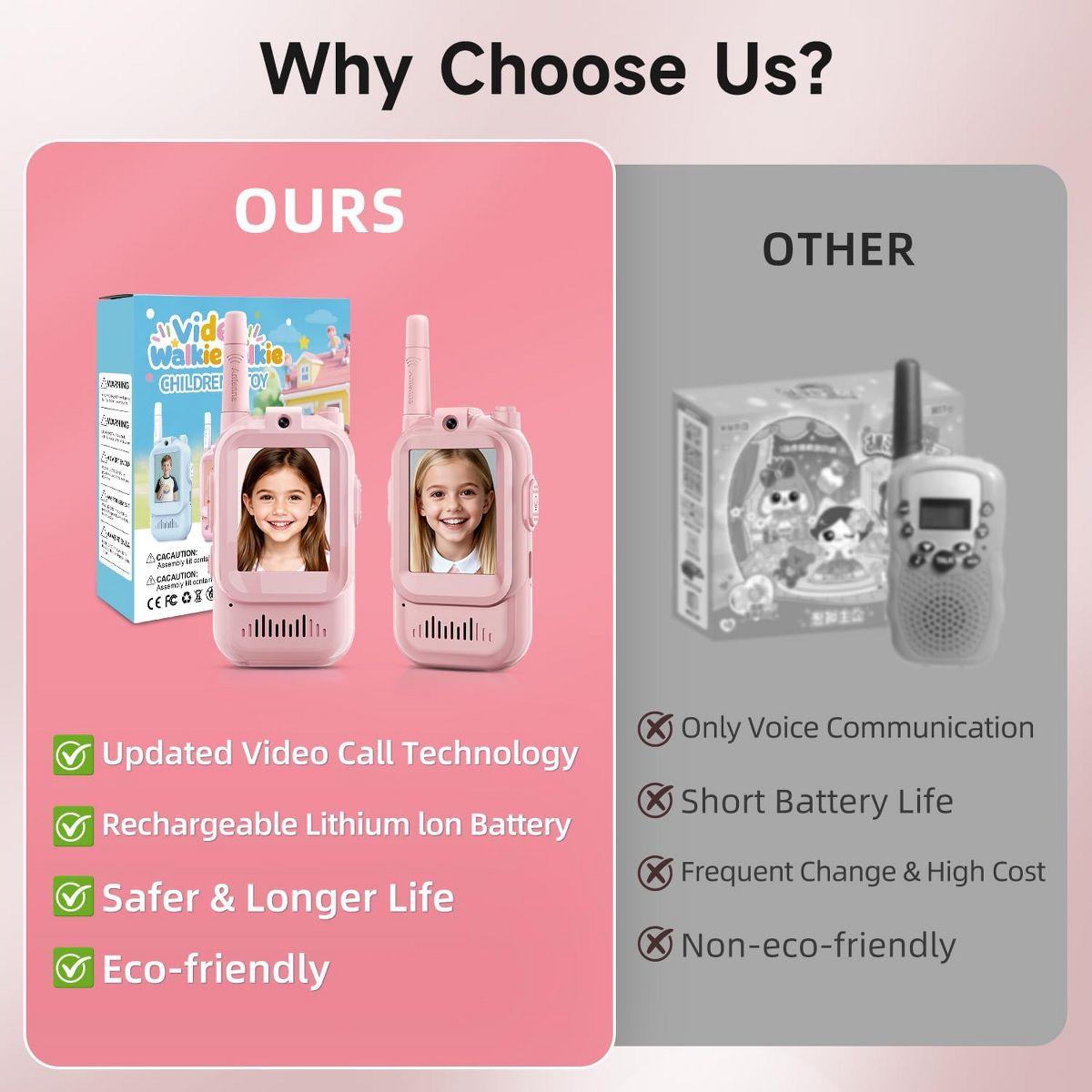FAAYFIAN Video Walkie Talkies for Kids, 2 Pack, Rechargeable, Handheld, Voice Changer, Push-to-Talk, Long Range , gift-ready for gifting