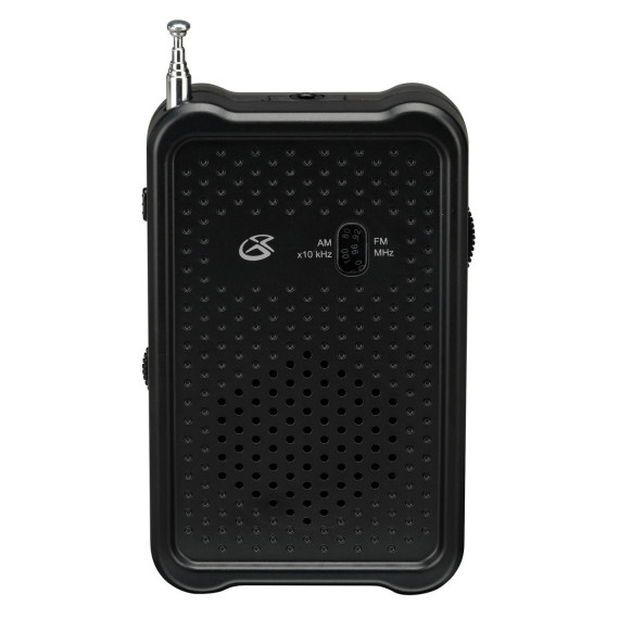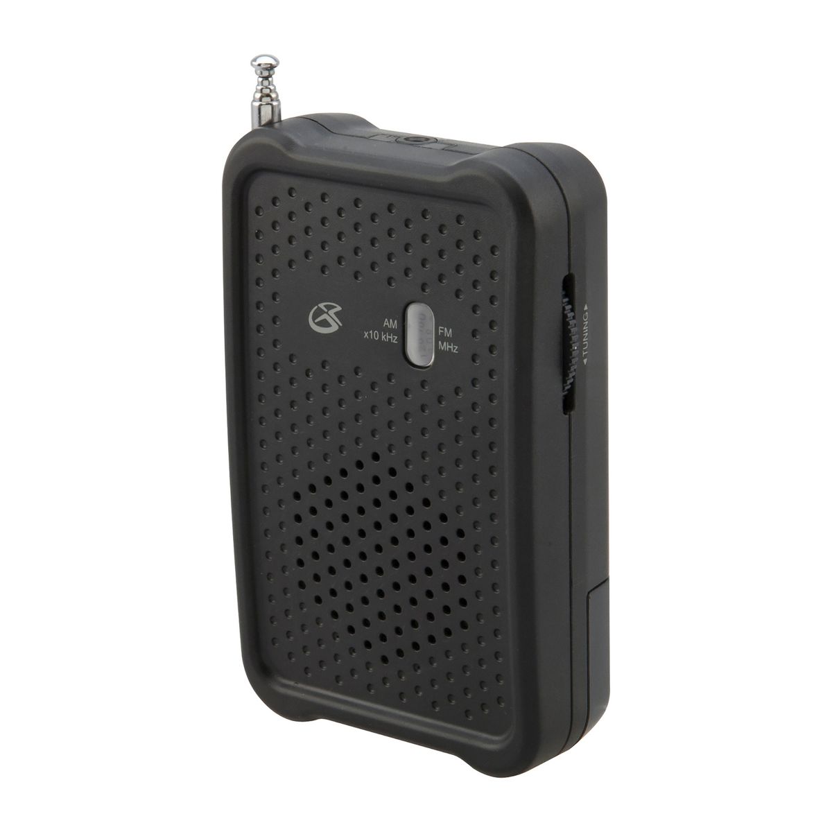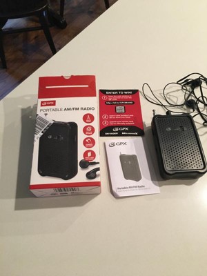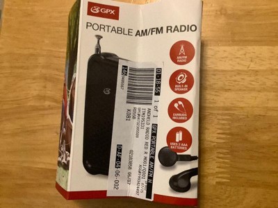 Listen to your favorite stations anywhere with the GPX® Portable AM/FM Radio! Now you can listen to music, news, and talk radio indoors or on the go. It has a telescoping antenna and analog volume control. The portable radio does have a built-in speaker but, for private listening, use the included pair of wired, 3.5-mm stereo earbud headphones. It operates on 2 AAA batteries, which are not included.