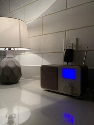 The JENSEN JCR-315 Digital AM/FM Dual Alarm Clock Radio has a simple design wrapped with a wooden exterior and finished with a blue backlit Digital LCD display. The JCR-315 has convenient features like dual alarms for setting two different wake-up times, selectable wake to radio or alarm, calendar, sleep/snooze functionality and a built-in 1A USB charging port for charging your smartphone while you sleep. This unit also features a dimmer switch with three (3) settings (Hi/Mid/Low) for day or night adjustments. Tune in your favorite radio stations with the digital tuner and program 10 AM or 10 FM stations for easy access. Can't find anything to listen to on the radio? No problem, just connect your phone or digital media player to the unit using the built-in auxiliary input jack and expand your listening capabilities. The JCR-315 operates on 120V AC and includes a battery backup system so your settings are maintained in the event of a temporary power interruption.