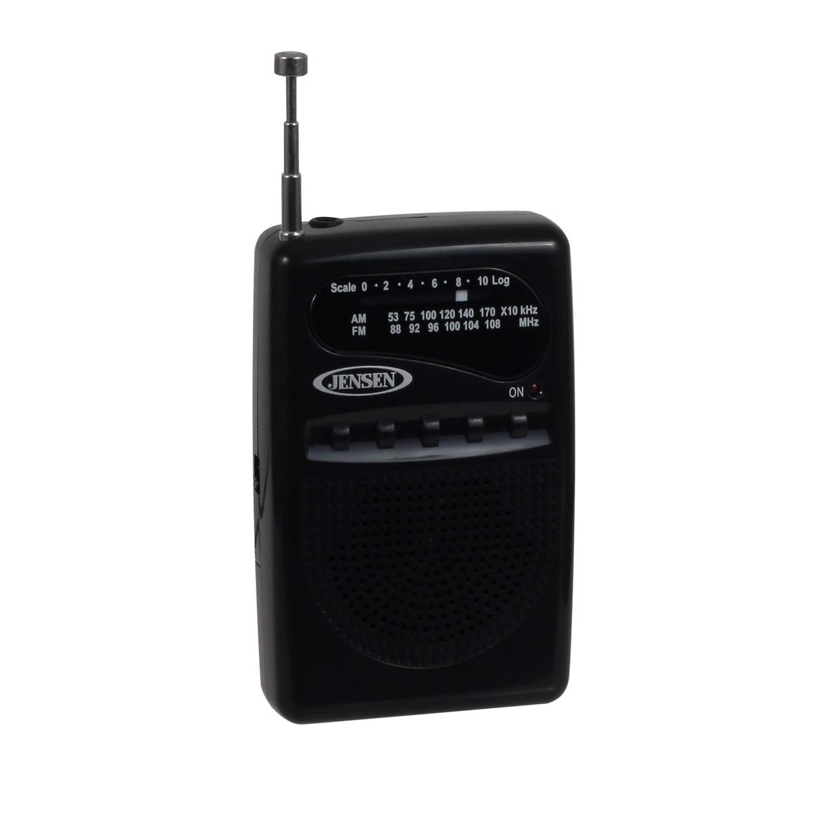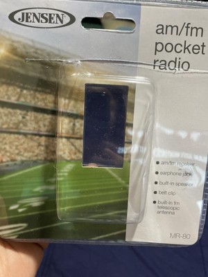 The JENSEN MR-80 AM/FM Portable Pocket Radio is portable and convenient. Take it to the beach, the ball game, or anywhere else you want to listen to your favorite AM or FM broadcast. Enjoy clear, static-free audio from the built-in speaker on this compact and durable device. The MR-80 comes with a snap-in belt clip, telescopic antenna, and earphone jack and also operates on two (2) x "AAA" batteries (Not included). An affordable, easy way to listen to music on the go.