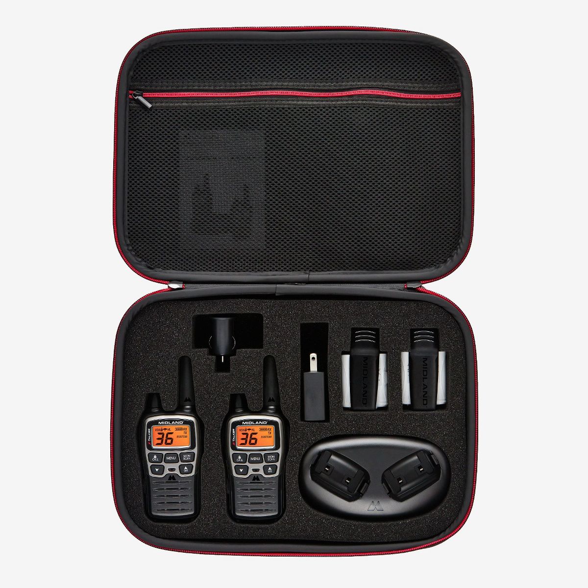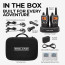Gear up for your adventure with the fully loaded X-Talker® T77VP5 Extreme Dual Pack. This value pack comes complete with six of Midland’s most popular accessories in a soft-shell carrying case. The Extreme Dual Pack comes equipped with a pair of X-Talker® T71 FRS/GMRS walkie talkies featuring Xtreme range, 22 channels plus 14 extra pre-programmed privacy code channels and Midland’s signature Weather Scan + Alert Technology. NOAA Weather Scan will automatically scan through 10 available weather band channels and will lock onto the strongest weather channel to alert you of severe weather updates. NOAA Weather Alert will sound an alarm indicating that there is a risk of severe weather in your area. It also features micro USB charging capabilities, hands free communication, 121 privacy codes, and silent operation.