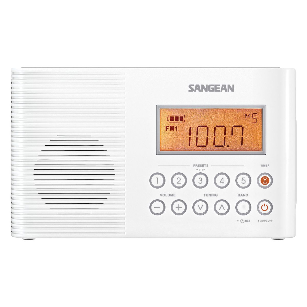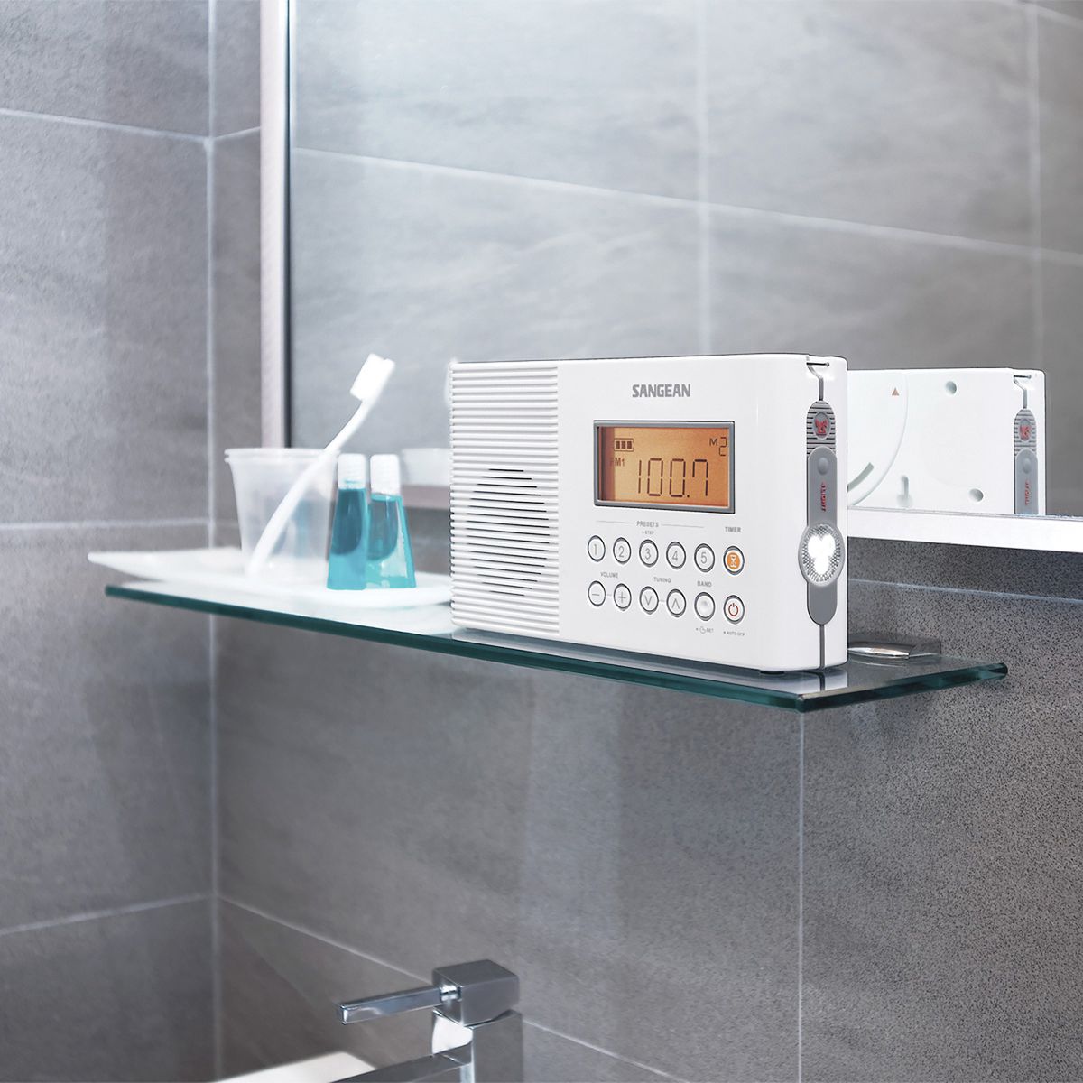 Sangean® H201 Portable 3-Band AM/FM/Weather-Alert Water-Resistant Shower Clock Radio in White