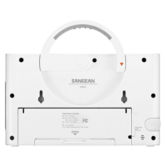 People often ask, "What makes Sangean better than the rest?" This shower radio is the answer. The H201 Portable AM/FM/Weather-Alert Water-Resistant Shower Clock Radio has a stylish design, clean features, and excellent station reception thanks to its built-in AM antenna and pigtail FM/WX antenna. But Sangean took it a step further by making it so water-resistant it's almost submersible! It also has a 2-watt speaker, an emergency LED light, and is a Public Alert certified radio so you can count on it to sound the alarm in times of weather emergencies. The H201 also has an adjustable sleep timer and an adjustable short timer. It includes a wall-mounting bracket, a swivel handle, and an adjustable carrying/hanging strap. This radio uses 2 D batteries or an AC power adapter, which are sold separately.