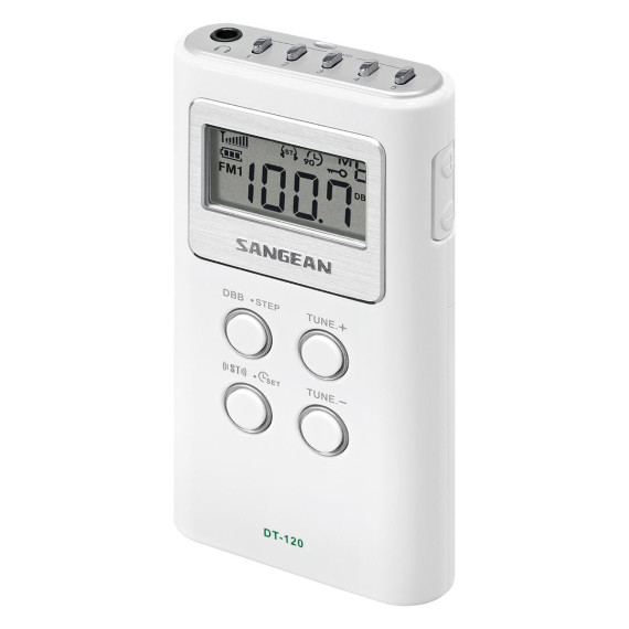 Sangean® Portable Pocket AM/FM Digital Clock Radio (White)