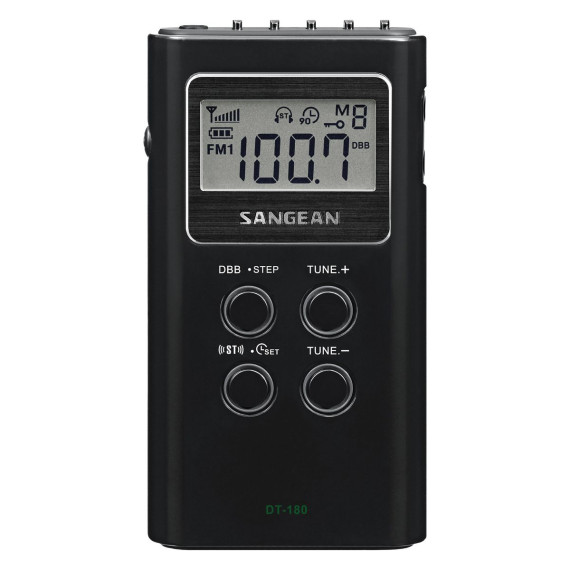 Underneath the beautiful White case, this Sangean Portable Pocket AM/FM Digital Clock Radio is a handheld-sized radio that offers amazing sensitivity and selectivity, with Digital Tuning that will easily tune in and program all of your favorite stations. It features 15 preset stations (10 FM, 5 AM), auto search, battery indicator, and turns off automatically after 90 minutes to conserve battery life. It measures a mere 2 in. by 3.7 in. by 0.7 in, and weighs only 2 oz., making it portable enough to take anywhere. With Sangean's traditional radio sensitivity, plus included stereo earbuds, you will be able to enjoy your morning jog, your short trip to the beach, or other outing without missing your favorite AM/FM station with this pocket radio. This pocket radio requires 2 AAA batteries, sold separately.
