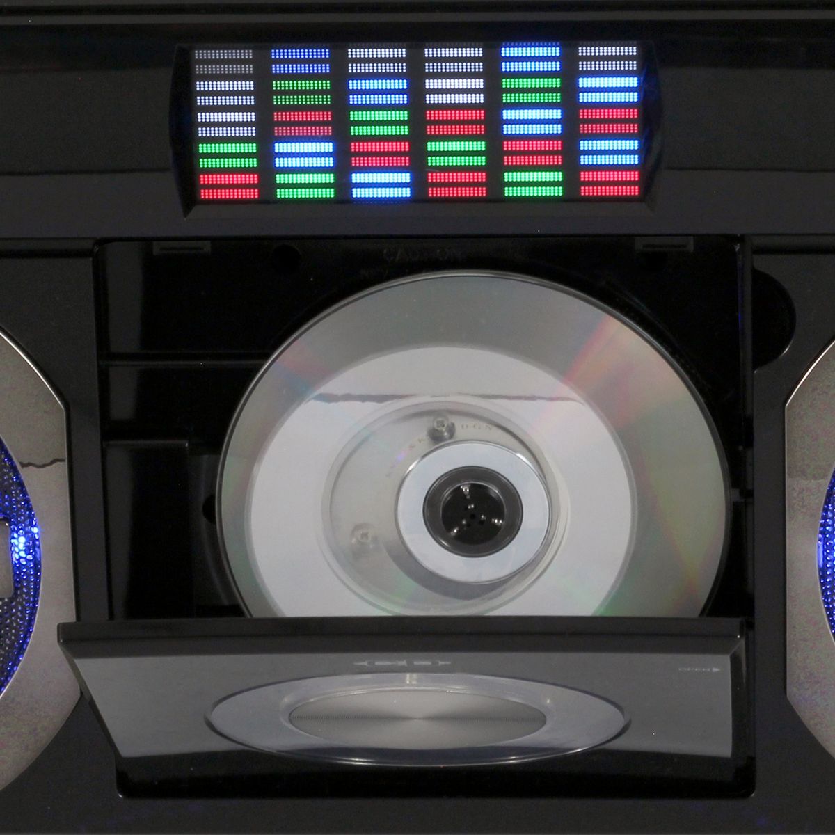 Reminiscent of the boomboxes of old, this portable CD Player with FM Analog Radio also includes Bluetooth connectivity for streaming music. The front loading CD player is CD-R/RW compatible. This unit comes with an auxiliary input jack and headphone jack. Other great features include built-in stereo speakers, rotary volume control, treble and bass adjustments and a convenient carrying handle. A multi-color LED Equalizer adds an exciting visual to this awesome looking unit. There is also a built-in AC transformer and built-in rechargeable battery.