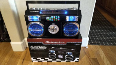 Studebaker 80's Retro Street Bluetooth Boombox with FM Radio, CD Player, LED EQ (SB2145) - Black