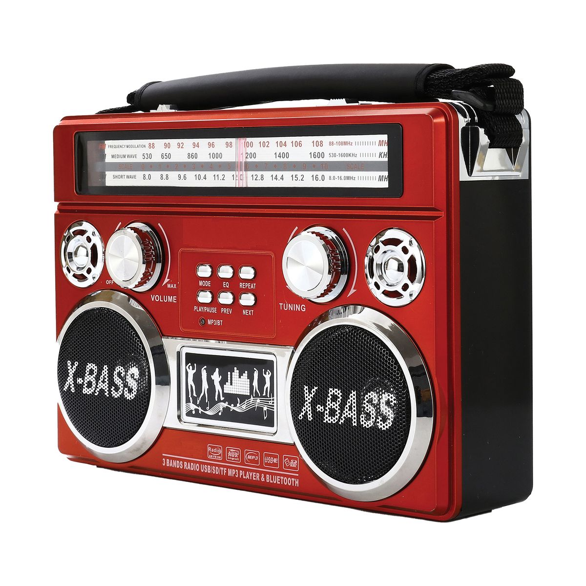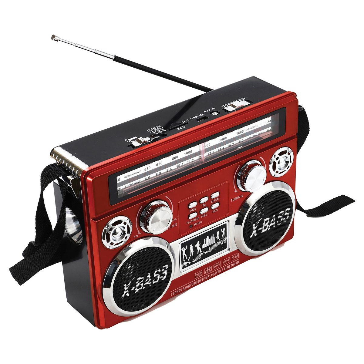 Supersonic® Portable 3-Band Radio with Bluetooth® and Flashlight, SC-1097BT (Red)