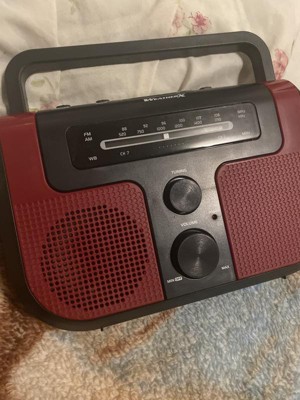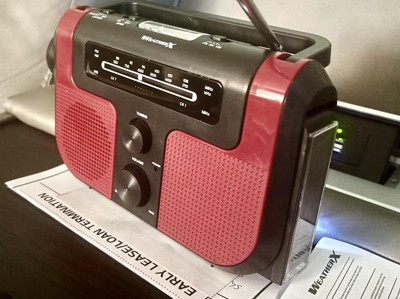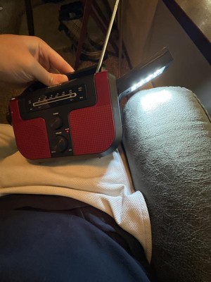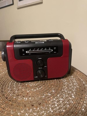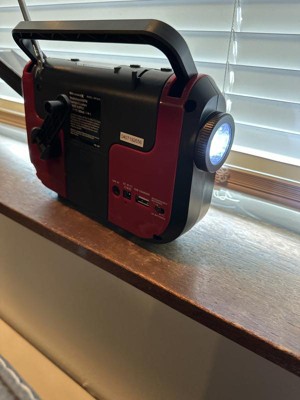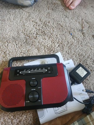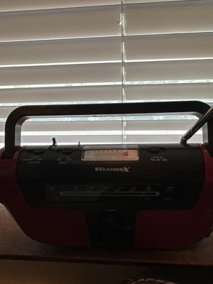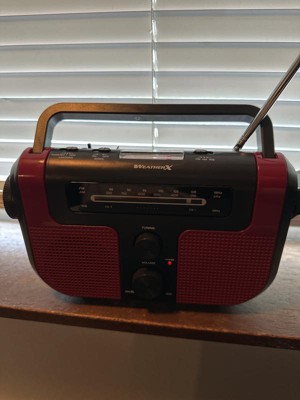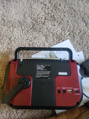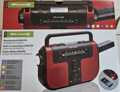 WeatherX WB/AM/FM Solar Charge Radio - Red (WR383R): Hand-Crank, USB Port, NOAA Alert
