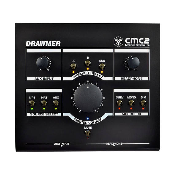 Have ever wondered whether monitor controller is coloring the sound that is informing mix decisions? A chilling thought. The active circuit in the CMC2 faithfully reproduces the recorded signal while eliminating the problems a passive circuit can bring. Accurate & TransparentWith the same Drawmer pedigree as the MC2.1, the CMC2 circuit is just as transparent and accurate. I's switches and paralleled custom-quad knobs have excellent channel matching and a smooth feel.Multiple ConnectionsWith 2 Stereo balanced jack inputs, plus a 3.5mm jack for Smartphone/MP3 Player with variable level control, the CMC2 is well connected indeed. It supports two sets of stereo monitors plus a sub-woofer, each with individual switches so can activate them in any order.In addition, it has a professional quality headphone output with a separate amplifier and level control, that provide the same audio quality and mix checking as the CMC2 does through the speakers.Key Mix check features such as Phase Reverse, Mono, Dim & Mute are also included, to enable to examine the quality of recordings with ease. CompactThe CMC2 packs a lot of features into a small package. With a footprint of just 18x16cm and a very low profile the CMC2 won't hog desk space like some other controllers do. And if on the move it's small enough to pop into a bag to take anywhere. Tough and SecureSmart, stylish and rugged, this all-steel enclosure will withstand the knocks and bumps of the studio, and, coupled with the high-quality components used, the CMC2 is built to last. In addition, a Kensington security slot provides protection from thieves.