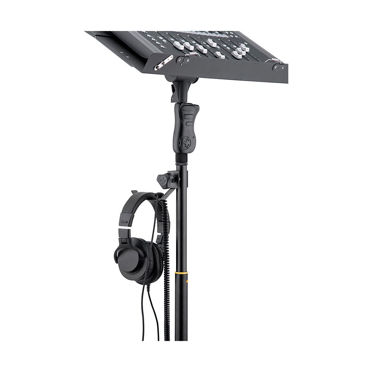 By hanging a guitar strap on a HA700 holder, musicians can reduce the risk of tripping over straps on the stage floor. It can also be used to prevent professional musicians from stepping on wireless equipment hung on the guitar strap. The holder can also firmly hold headphones weighing under 4.5 lbs, and keep audio cables untangled and organized. Lightweight and handy, the HA700 holder is a useful addition for stage, studio and home.HA700 is suitable for a tube diameter, 15 – 30 mm, and can be simply clamped to the tubes of AGS Guitar Stands, Microphone Stands, and Orchestra Stands.