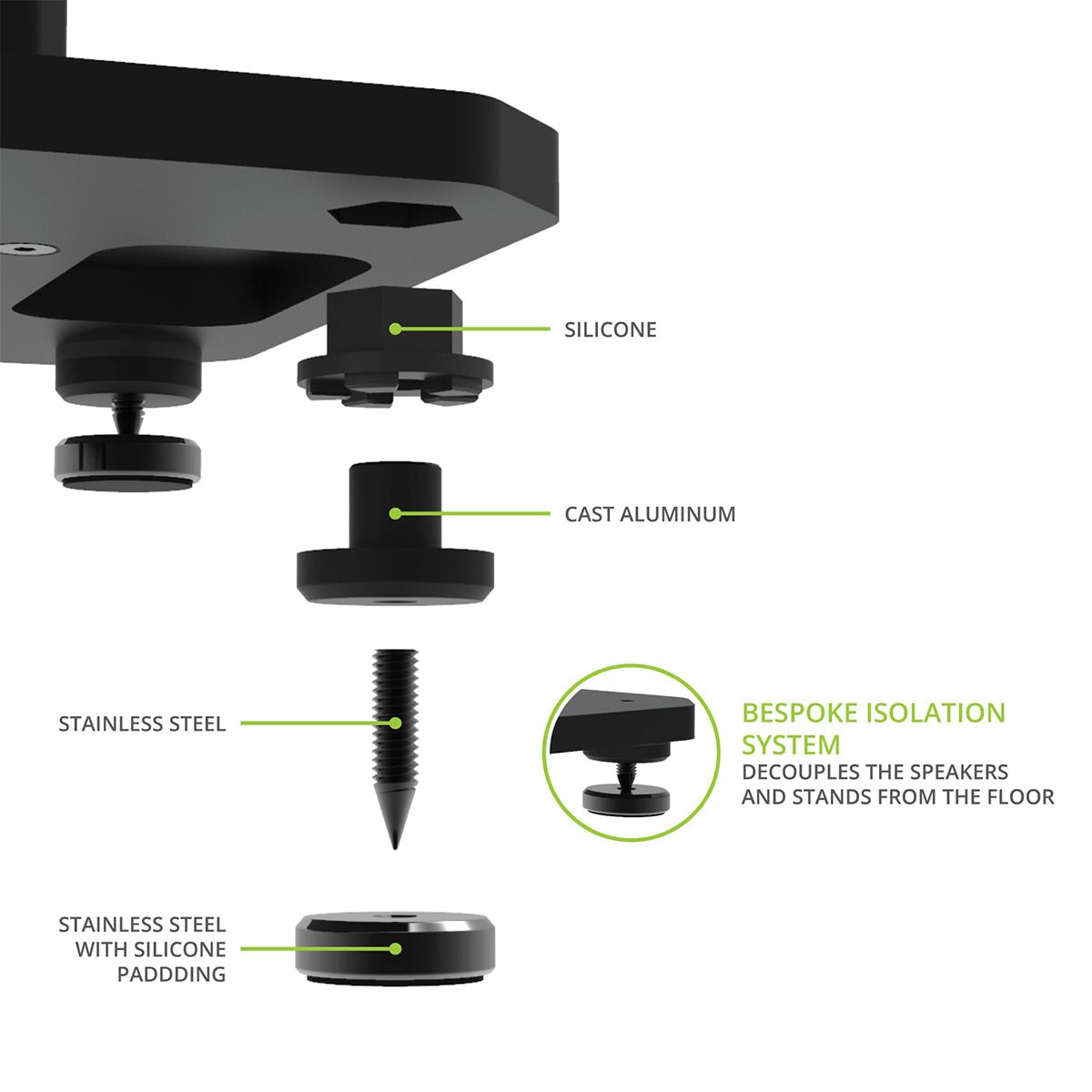 Bespoke Isolation FeetSpecially designed for the SX Series these feet decouple your speakers and stands from the floor for class leading audio performance.