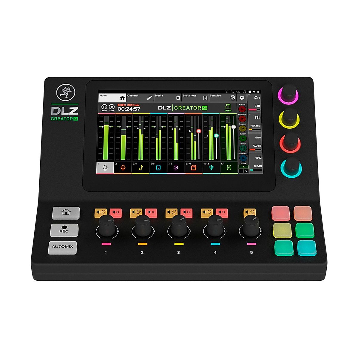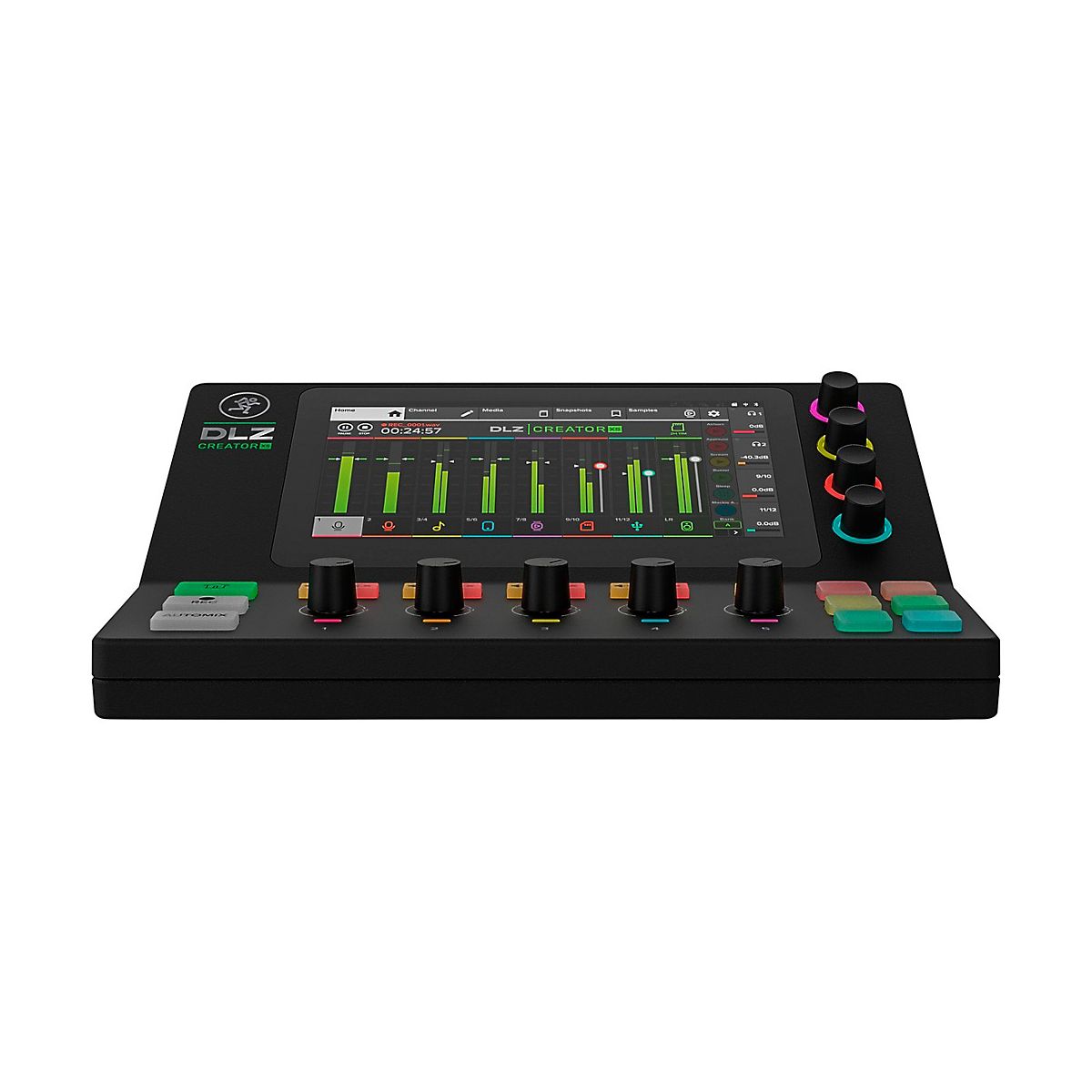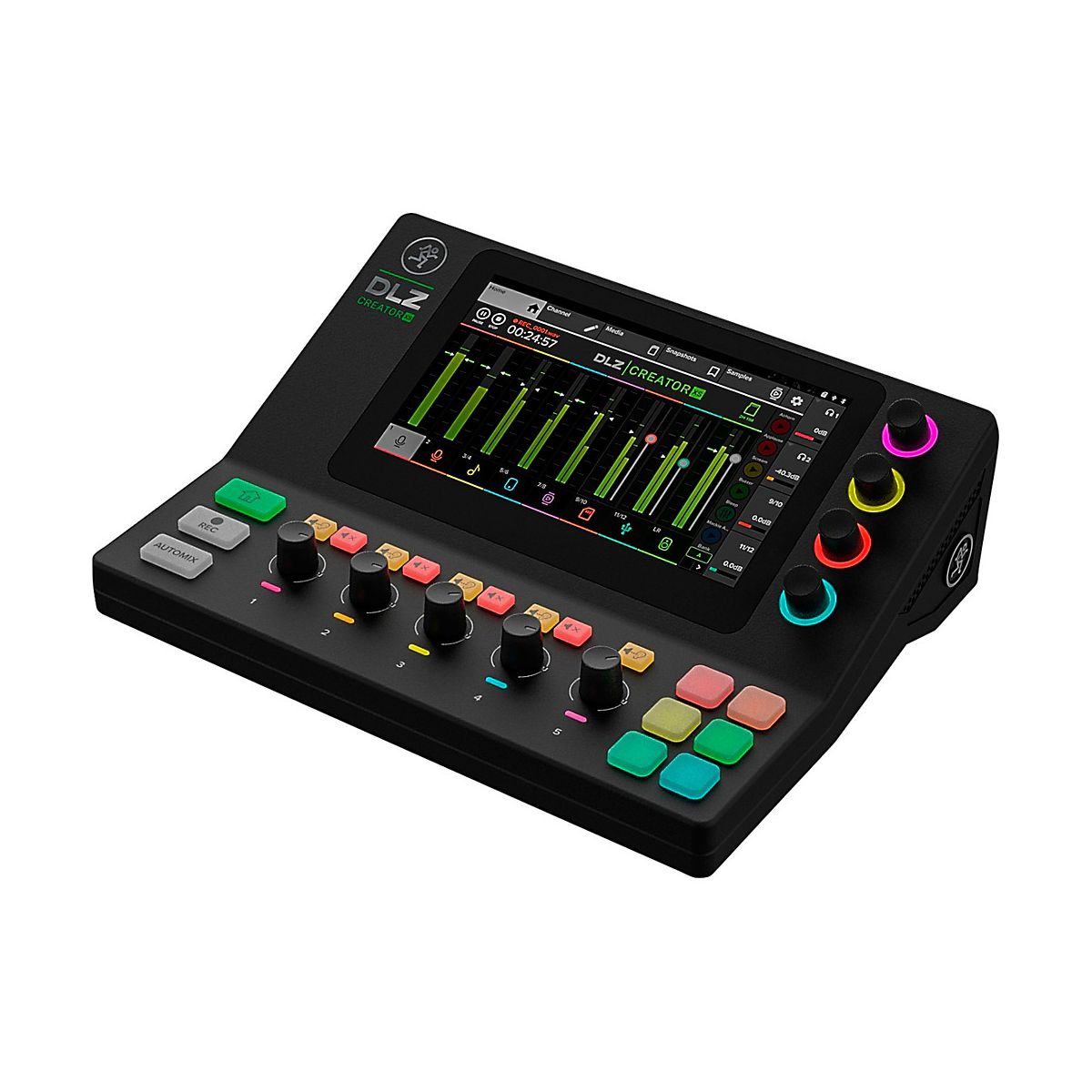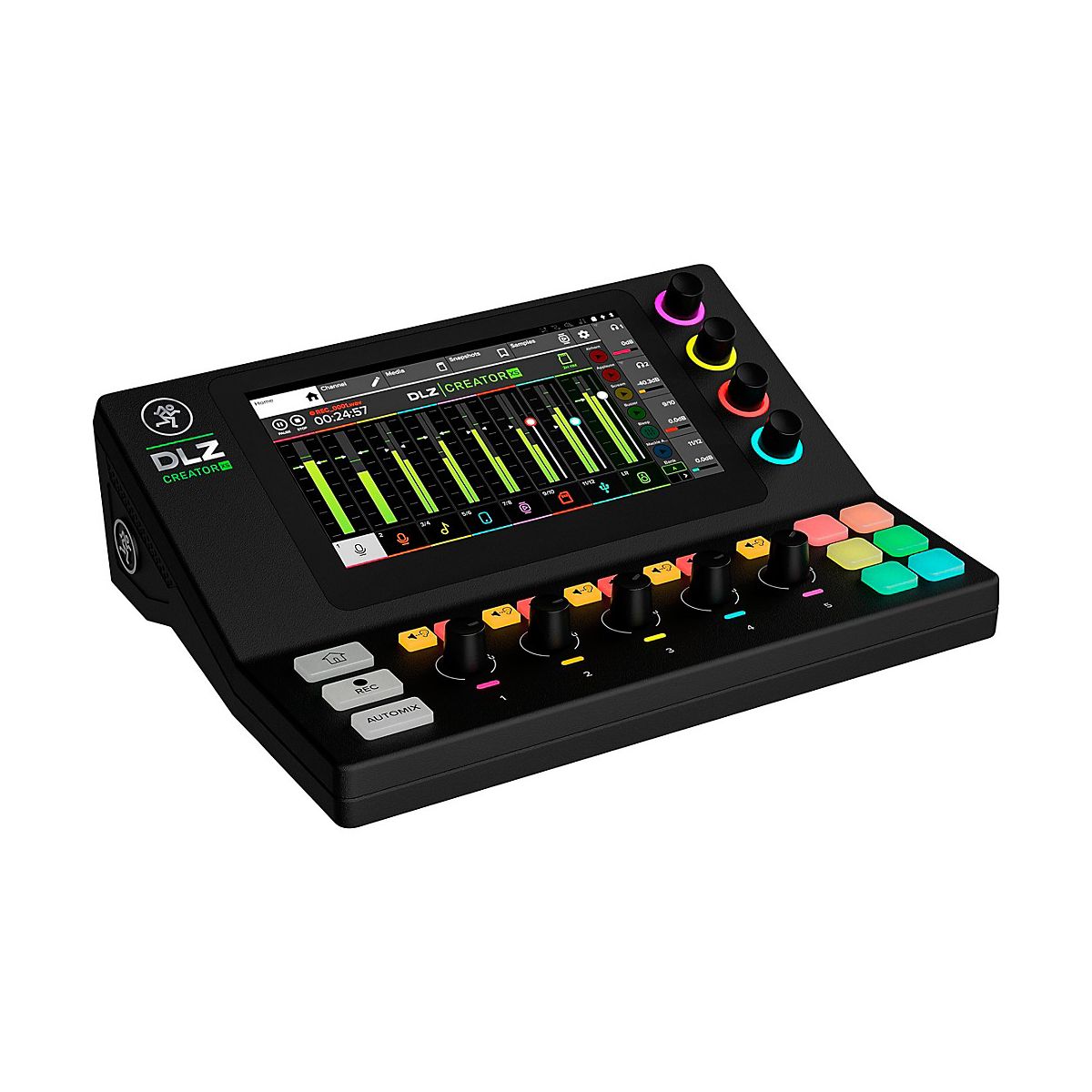 The DLZ Creator XS compact adaptive digital mixer from Mackie makes it easy for podcasters, streamers and content creators to get professional results fast. With intelligent Mix Agent technology and AutoMix features, even beginners can achieve great-sounding recordings and broadcasts. Customize Controls for the Perfect Workflow The DLZ Creator XS adapts to with three modes that reconfigure the 7" touchscreen to match skill level. Choose Easy mode for straightforward operation, Enhanced to access more advanced options or Pro mode to take full control of this powerful mixer. No matter which mode pick, 'll get studio-quality sound thanks to the built-in Onyx80 mic preamps. AutoMix Manages Podcast's Levels When 're recording or streaming live with multiple mics, AutoMix is invaluable. It smoothly adjusts levels so and co-hosts or guests can all be heard clearly, even when talk over each other. can also give everyone their own customized headphone mix too. AutoMix takes the guesswork out of mixing, making shows sound more professional. Trigger Samples, FX and More From the Pads Six customizable pads give fingertip access to samples, voice FX and handy controls like fade, duck and censor. Store up to eight banks of samples and sounds to easily insert into podcast or stream. The pads also provide a fun way to add voice changer FX and sound drops that will keep audience engaged. Record and Stream With Flexible Options The DLZ Creator XS handles both recording and streaming with ease. Capture pristine, multitrack audio to computer over USB-C or NDI or record directly to an SD card for a standalone setup. However connect, the Creator XS delivers studio-quality results every time.For podcasters, streamers and content creators looking to improve their productions, the DLZ Creator XS is the ideal mixer. Its smart features help sound best while staying focused on creating compelling content.