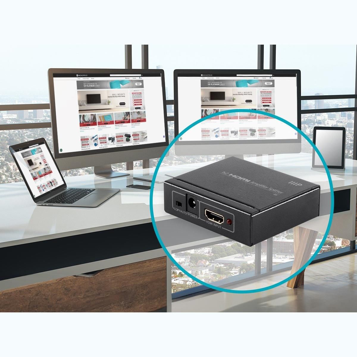 Monoprice Blackbird 4K 1x2 HDMI Amplifier Splitter | Supports 48-bit Deep Color