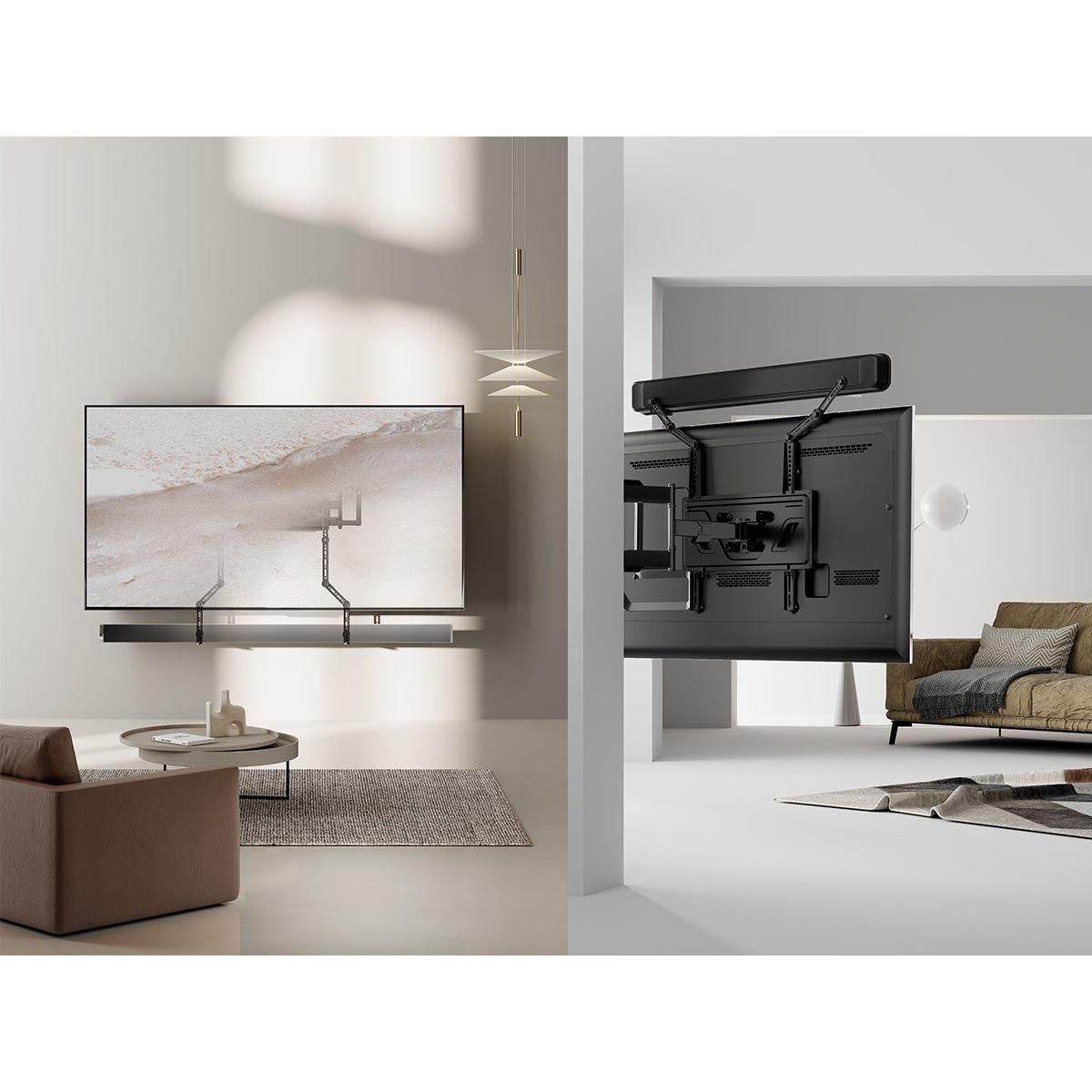 With adjustable arms, our Soundbar Mounts cater to a variety of soundbar sizes, making them compatible with most leading brands on the market. This adaptability ensures a snug fit for your audio equipment and provides a sleek and polished look that complements your home theater setup.
