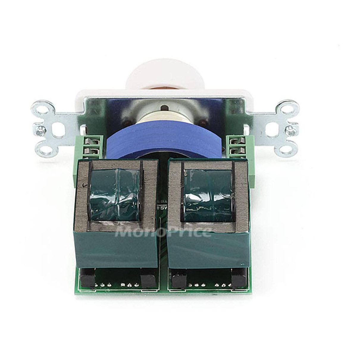 This is a rotary-type wall plate volume control for speaker systems with power ratings of up to 75 watts per channel and impedance ratings of 4 to 16 ohms. This rotary control can be set to one of twelve positions, including the minimum (off) and maximum volume settings. The wall plate mounts into a standard single-gang, low-voltage wall bracket (not included) and has inputs and outputs for one pair of stereo speaker wires (4 input connections and 4 output connections). It can accept speaker wire in sizes from 14 to 16 gauge and provides a frequency response range of 35 Hz to 20 kHz (+0/-2db) at the full power rating of 75 watts per channel.